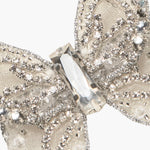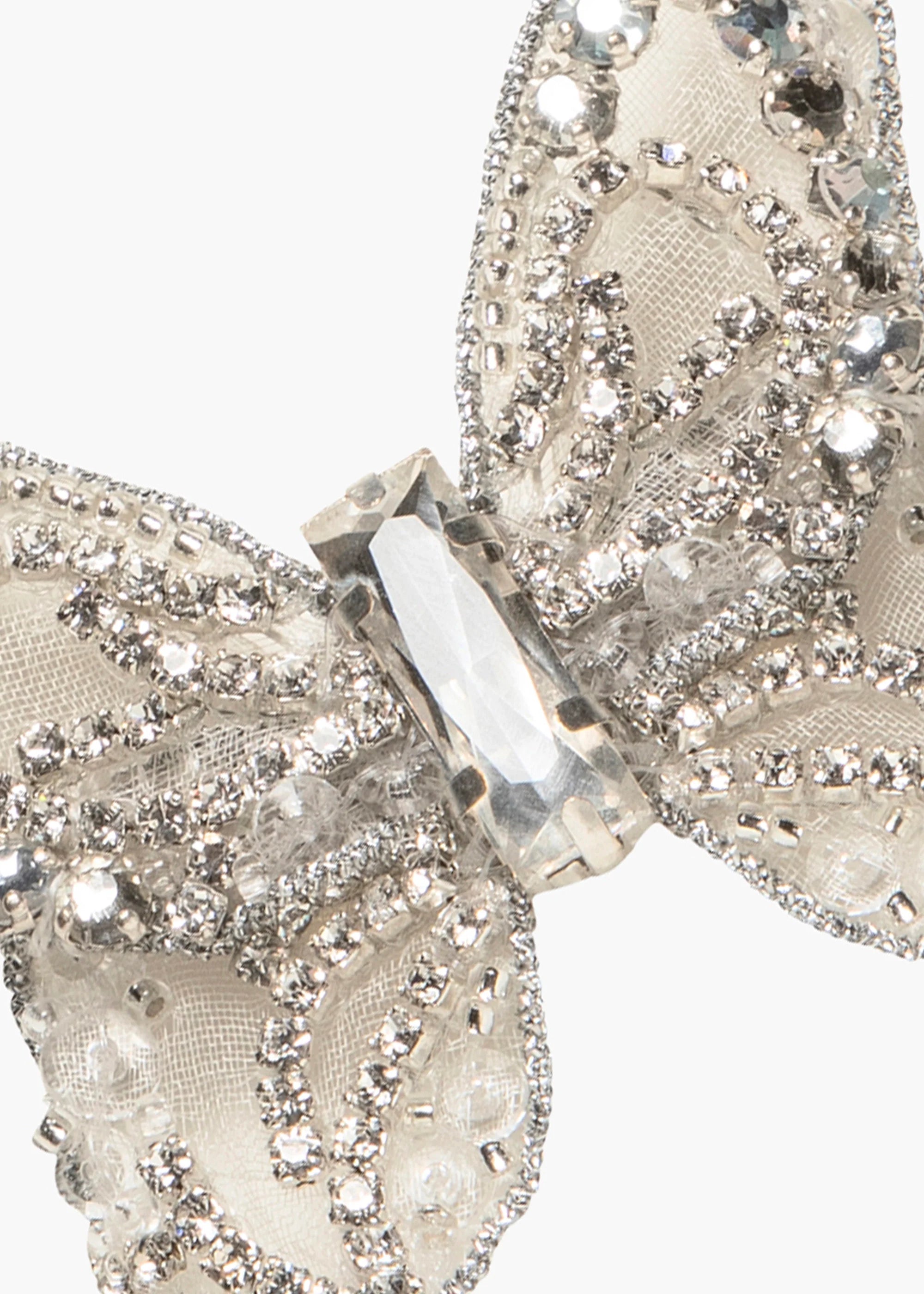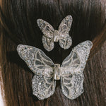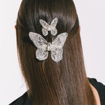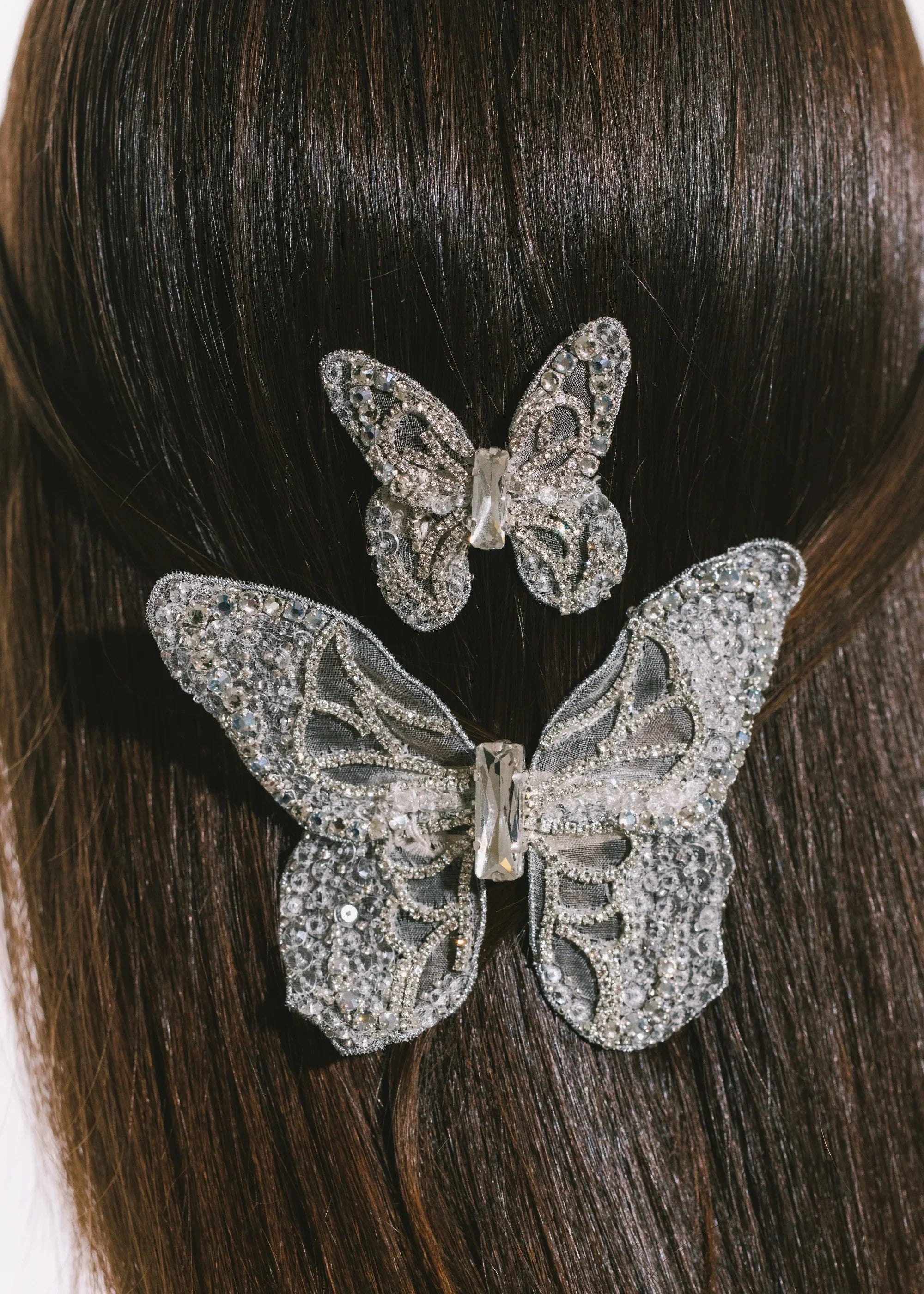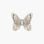 The Abbie Barrette is made by hand in New York, with hand-embroidered Austrian crystals scattered across silk chiffon, dip-dyed to create an ombré effect. The butterfly is wired by hand to create its nuanced, lifelike shape— butterflies are integral to the Jennifer Behr brand, representing spiritual rebirth and connection to the divine. Each one is finished with a French flip clip for secure placement anywhere in the hair— layer multiples at once for a dramatic finished look.