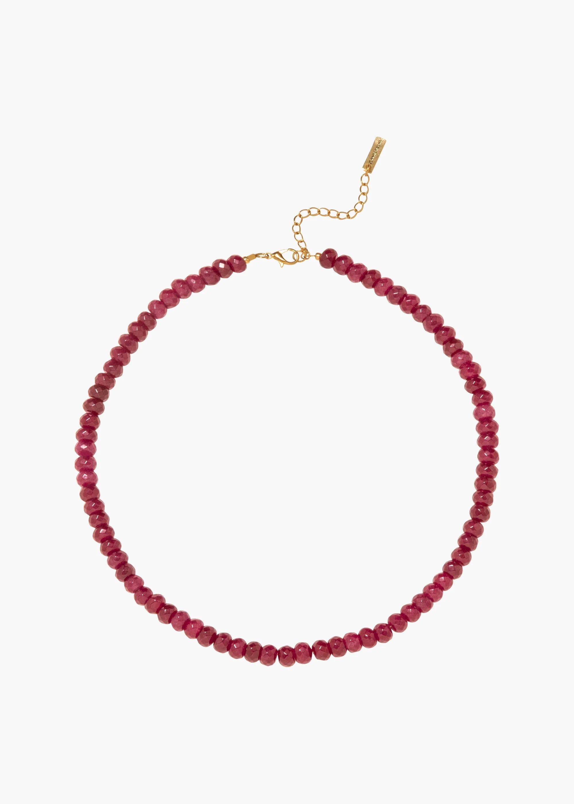The Amani Necklace features natural semi-precious gemstones, including garnet and blue quartz. Made by hand in New York, the stones are faceted into glowing beads, emphasizing the natural variations that make each necklace unique. It's finished with an 18-karat gold-plated lobster clasp, with an extender chain for an adjustable fit, making it the perfect piece to layer with other necklaces in our collection. Dimensions: 20" length