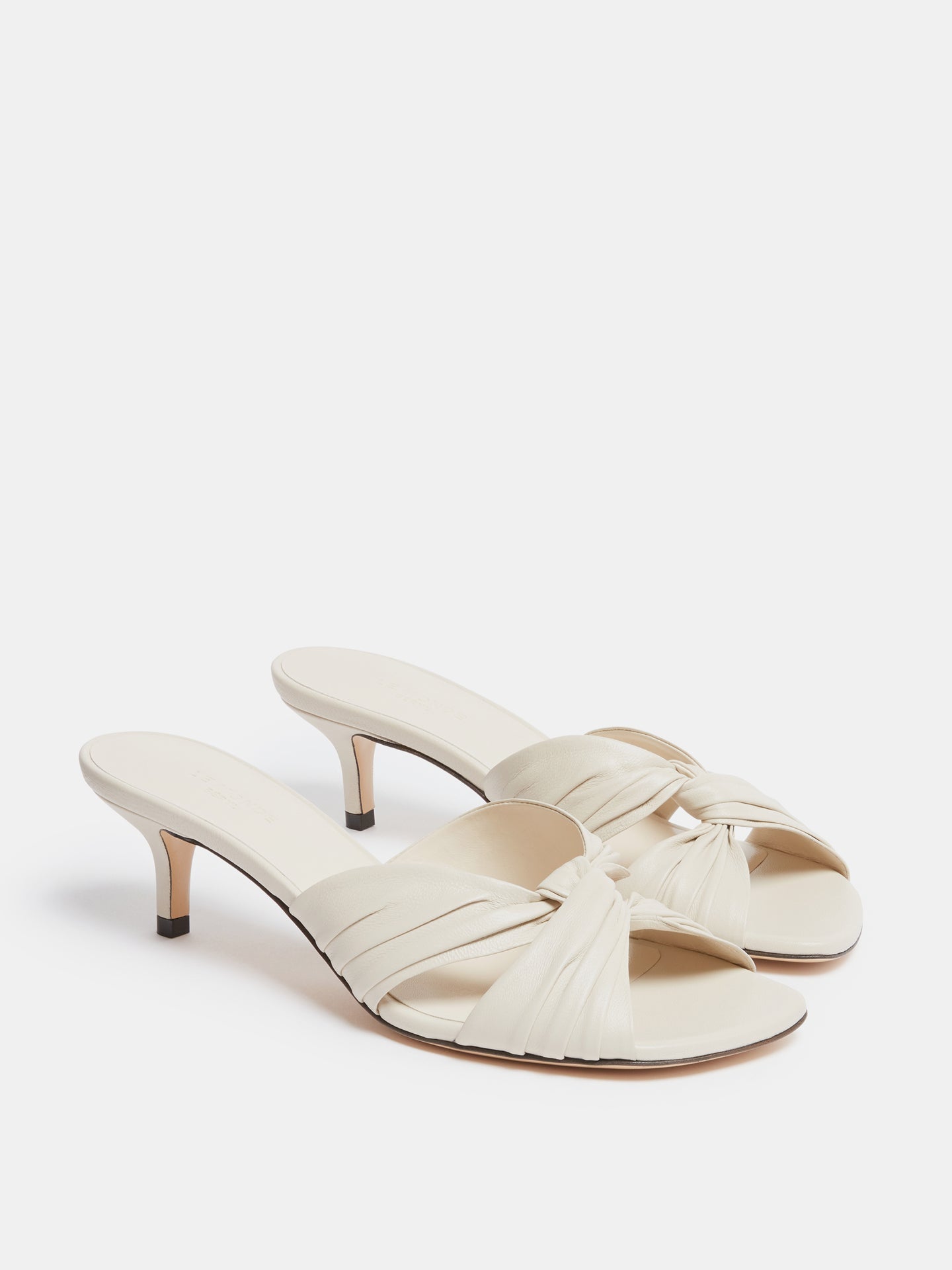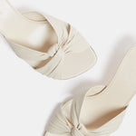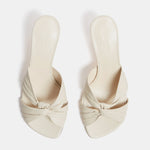 Antonia Kitten in supple ecru leather with a cushioned calf leather insole. 50mm heel. Made in Italy.