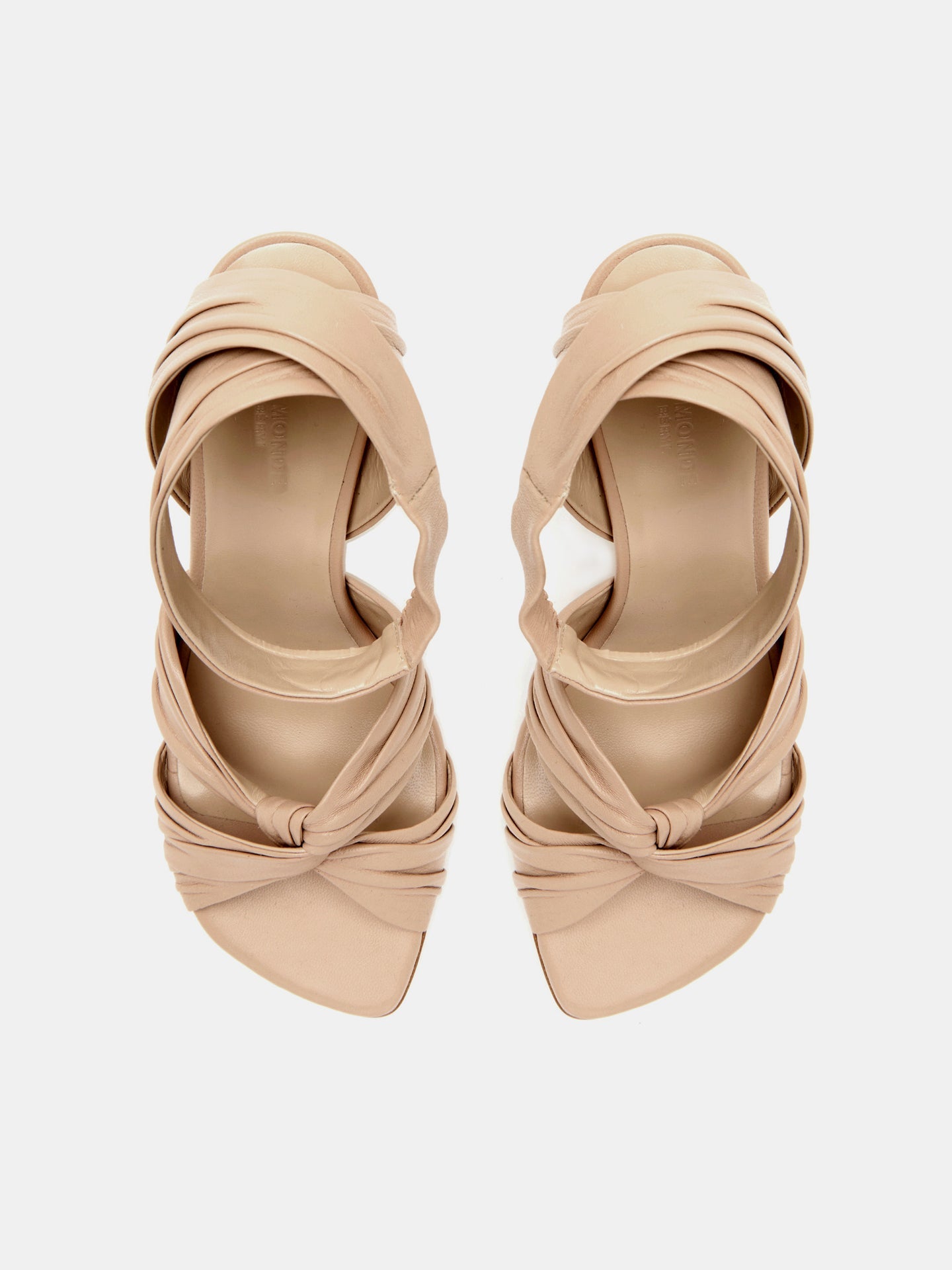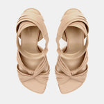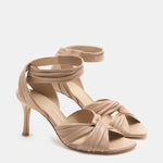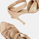 Antonia Pump, handcrafted in supple fawn leather with an ankle strap, cushioned calf leather insole and 80mm heel. Made in Italy.