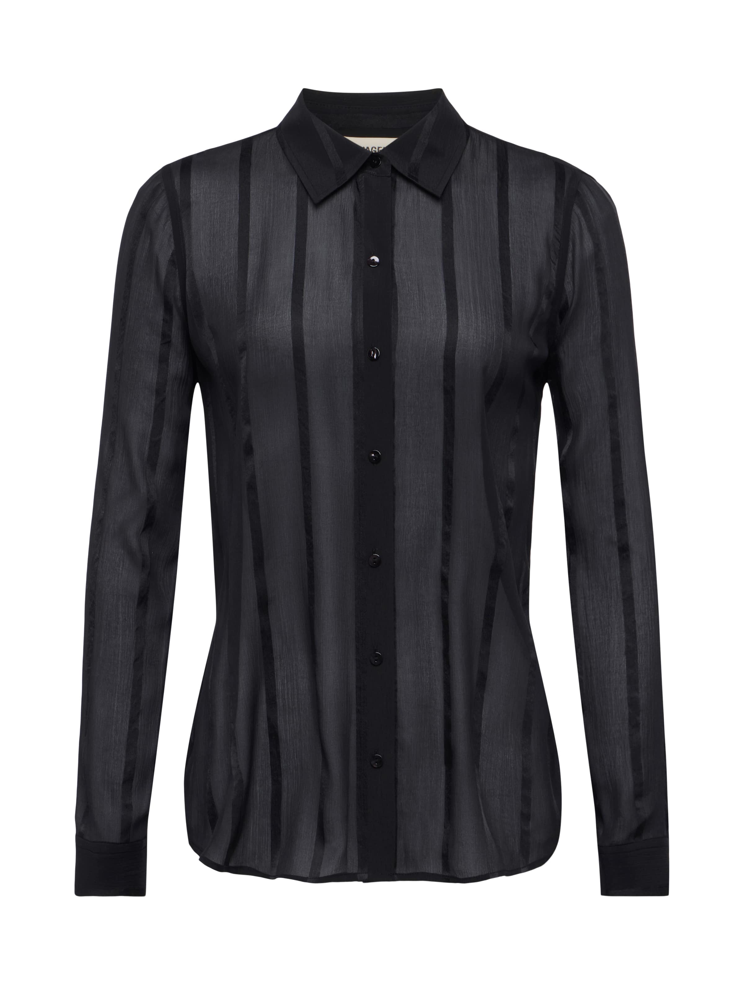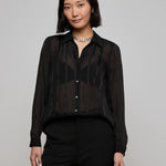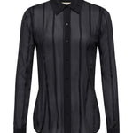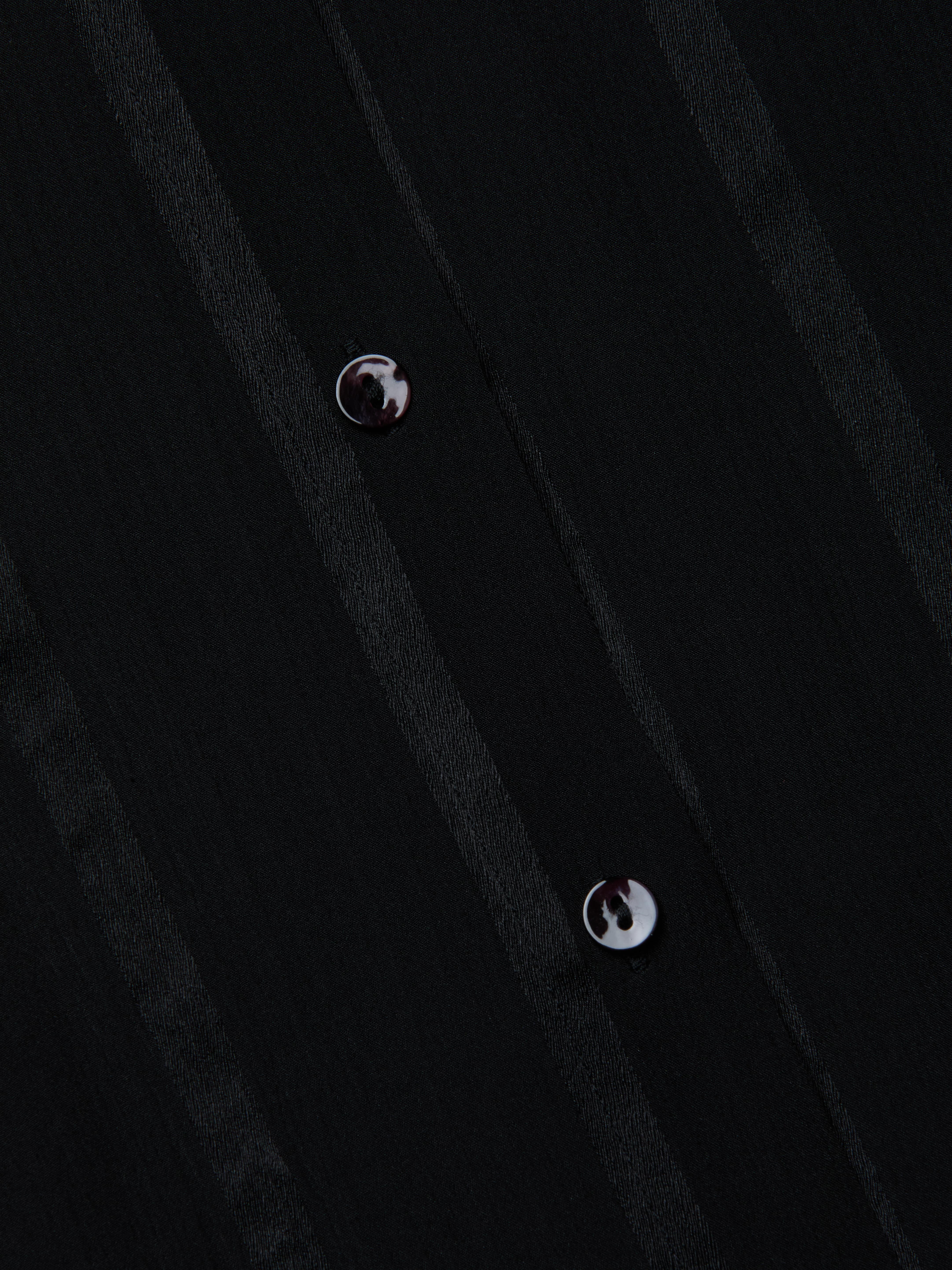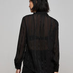 Our relaxed fit long sleeve button-down, now in sheer black silk with tonal pinstripes.
