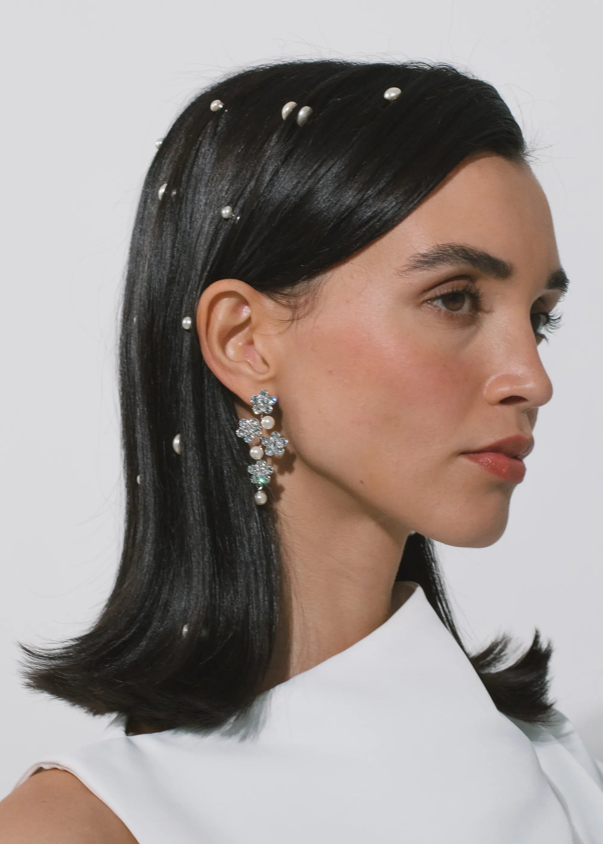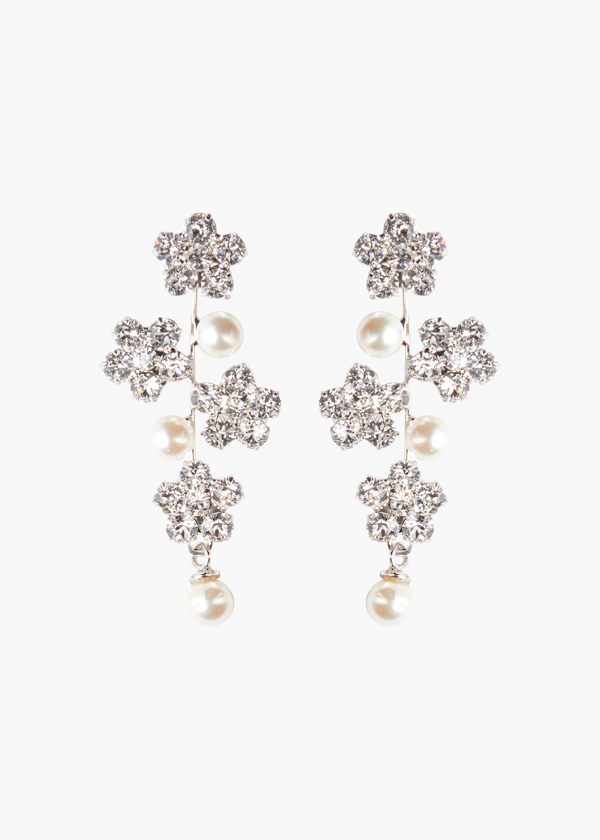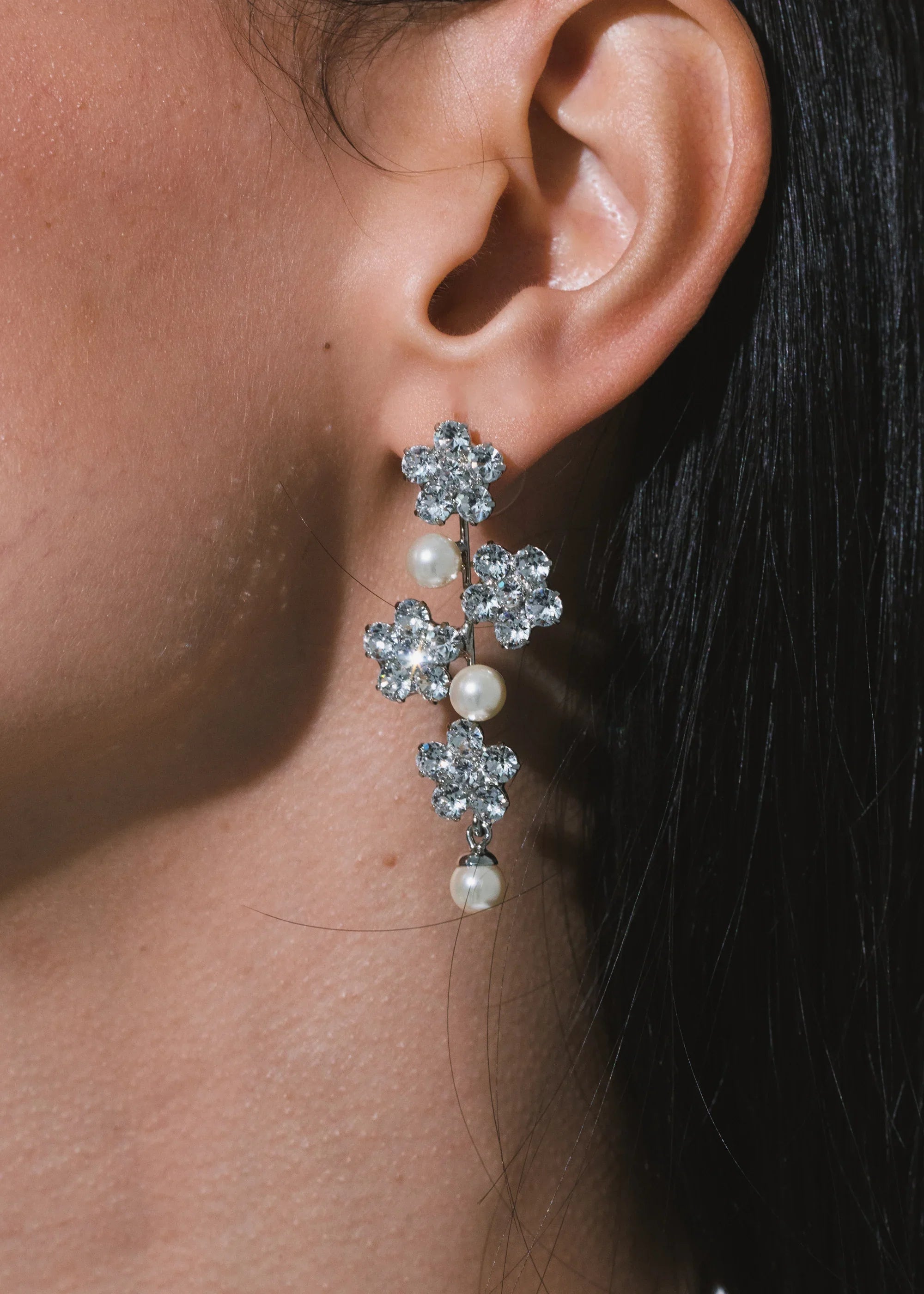 The Aria Earring gives you the best of both worlds: the sparkle of crystal flowers mixed with classic crystal pearl elements. Made by hand in New York City.