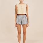 Patterned with gingham in an exclusive POSSE handloom, the Aurelia are a bloomer style short with a flattering high-rise waist and tapered, cuffed hems. Style yours as a set with the matching Mira Shirt.