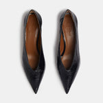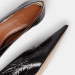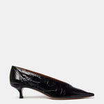 Babouche Kitten Heel in black naplack leather with a pointy toe and cushioned calf leather insole. 40mm heel. Made in Italy.