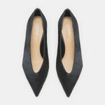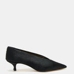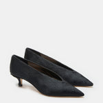 Babouche Kitten, handcrafted in black calf hair with a pointy toe, cushioned calf leather insole and 40mm heel. Made in Italy.