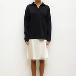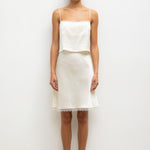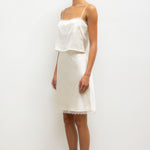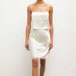 Cut in our Japanese-crafted Barb Lace Satin, the Barb Lace Slip Skirt features a straight midi length and soft elastic waistband. Finished with a fine, scalloped lace edge.