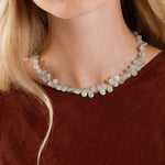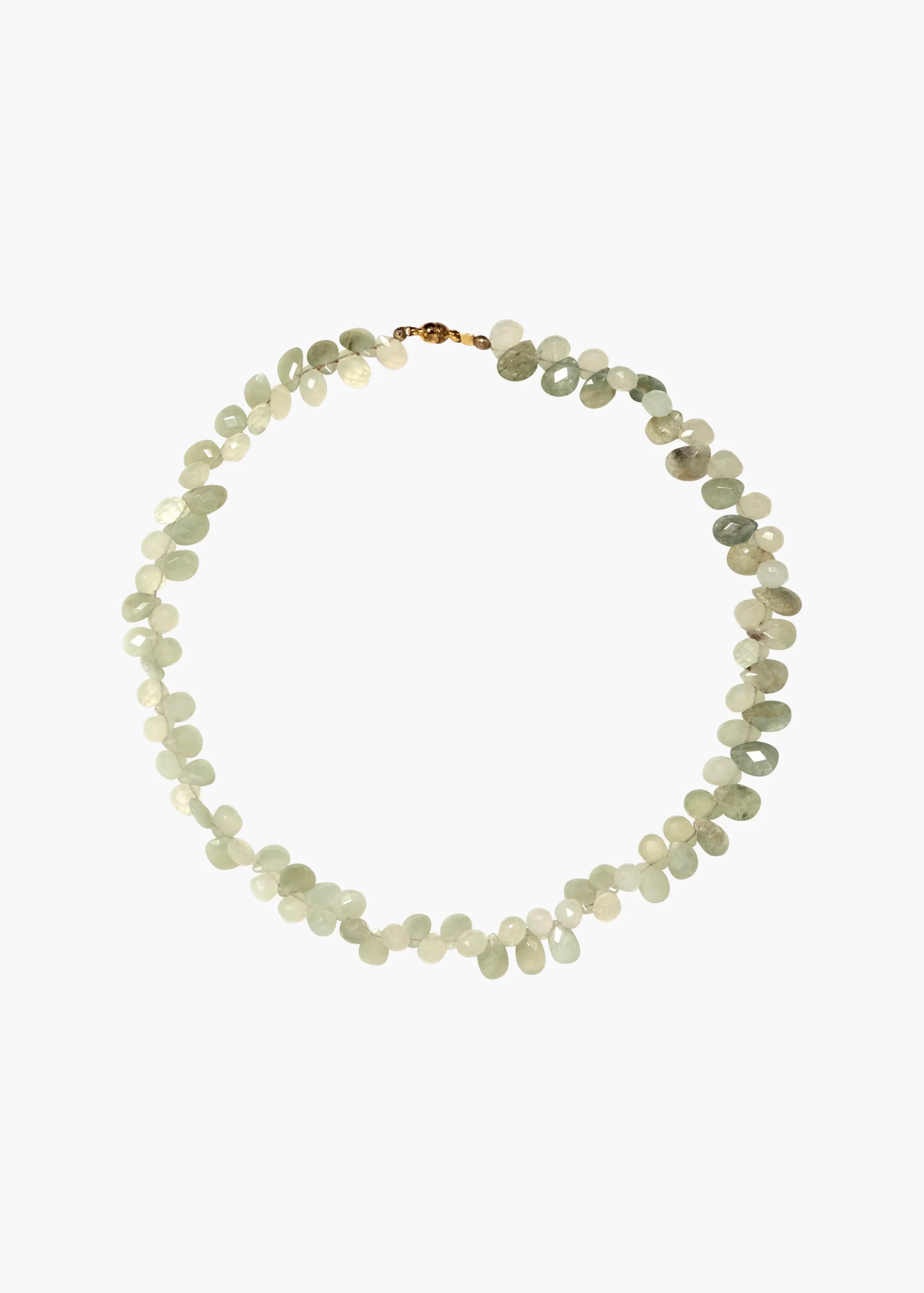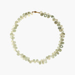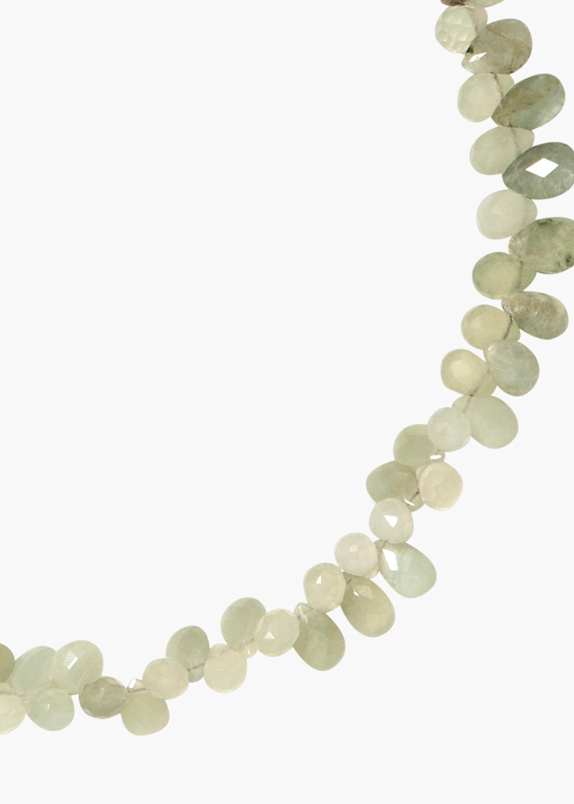 The Bernadette Necklace features semi-precious gemstones in a teardrop shape, each unique stone carefully selected and strung together like glistening dewdrops. The way the beads lay lends an organic feeling, while the faceted stones offer endless shine. Made by hand in New York, the necklace is finished with an 18-karat gold-plated magnetic clasp, making it easy to dress up and wear solo, or layer with other necklaces in our collection. Dimensions: 16" length