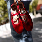 Handcrafted by artisans in Northern Italy, the Boheme Mary Jane by Cayumas will quickly become your most cherished everyday shoe. Detailed with English liberty fabrics on the sole, they feature an adjustable strap with a nickel-free buckle, round toes and are crafted from organic velvet.