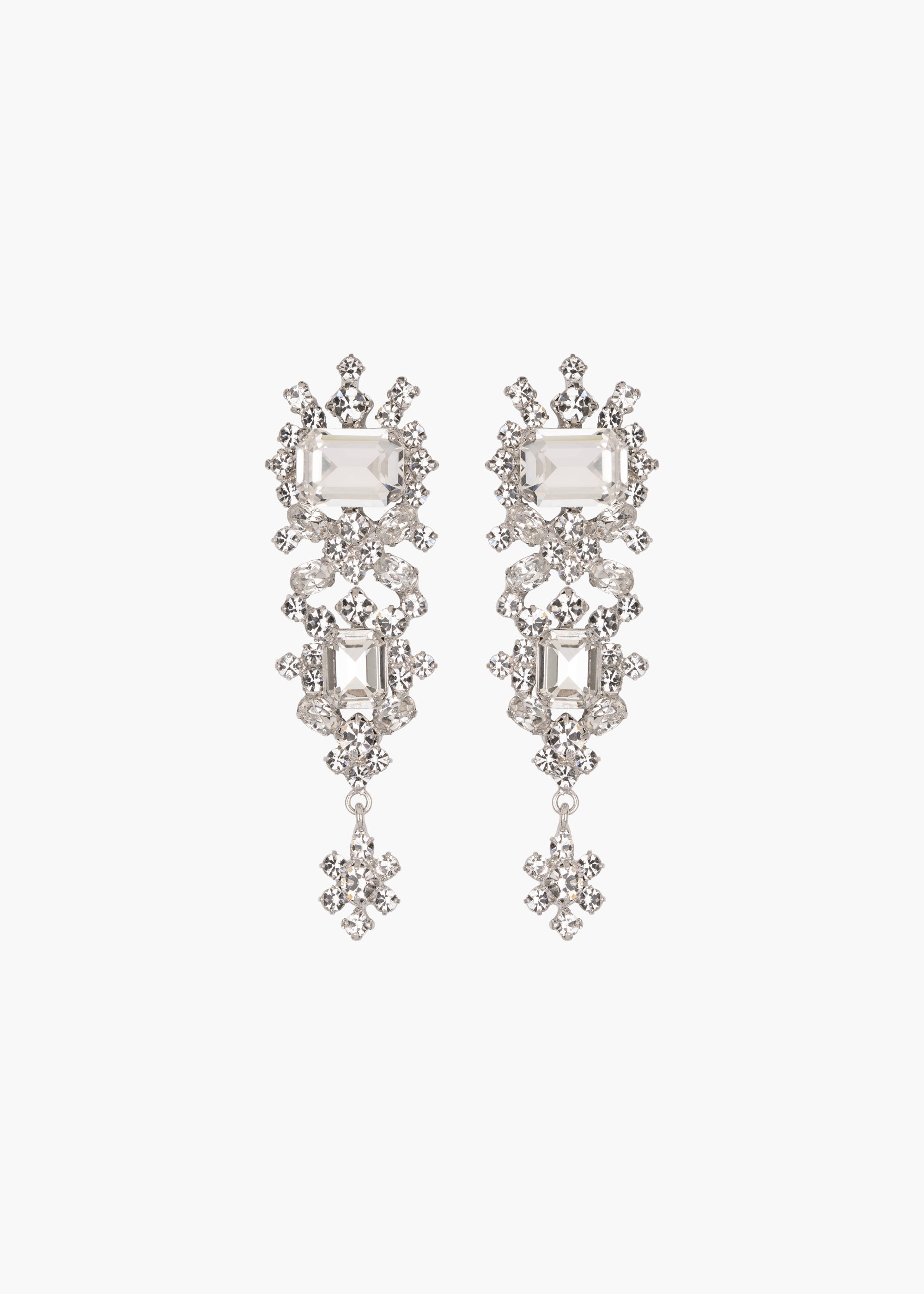 The Cadence Earrings are a royal-worthy statement for modern times. Made by hand in New York, these fine crystals go to statement-making lengths, with jagged edges drawing emphasis to the stunning emerald-cut stones. Their noteworthy sparkle is only enhanced by their graceful movement.