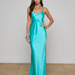Simple, seductive, sublime. The U-neck cut of our new Charmaine silk gown reveals a flattering hint of décolletage. Now in a vibrant lagoon hue.