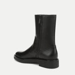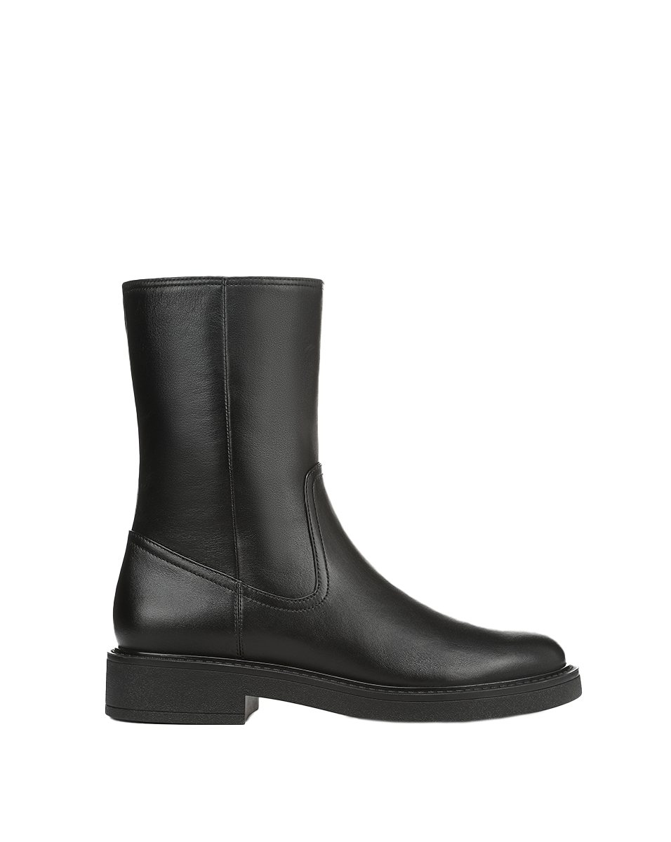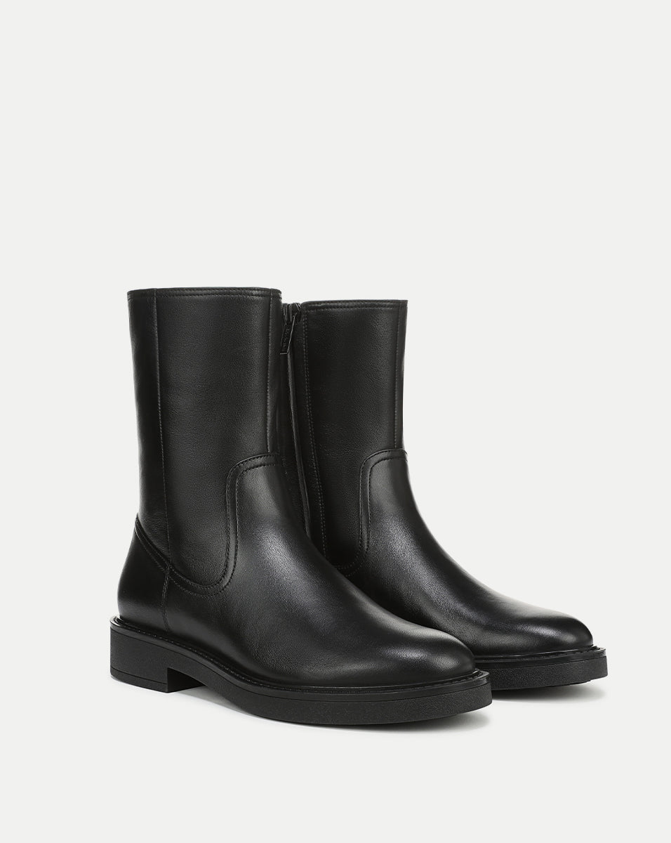 The essential ankle boot—timeless and sleek. Expertly crafted from premium black leather, the Creswell is a clean, minimalist bootie with a slim mid-calf silhouette, rounded toe, and a flat rubber sole with subtle lift. It’s finished with a concealed side zipper for ease. Ever versatile, pair it with everything from wide-leg jeans to maxi dresses to instantly elevate your look.