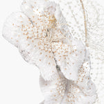 One of our most opulent pieces of modern veiling yet, the Crystal Orchid Voilette is part veil, part headdress. Made entirely by hand, the delicate veil is fully encrusted with pearls and fixed with crystal beaded orchid flowers that sit off to the side as if pinned to the hair. The beaded orchids are anchored by a slender, flexible headband, which disappears into the hair when worn.