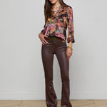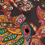 The iconic silk button-down that belongs in every wardrobe. Our signature three-quarter sleeve shirt is back in black with a colorful paisley print.