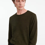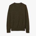Classic regular fit pullover crewneck sweater in Italian fine gauge merino wool. Rib trim at neck, sleeve and hem. Fashioning details at arm hole and shoulder. Signature center back cable knit detail.