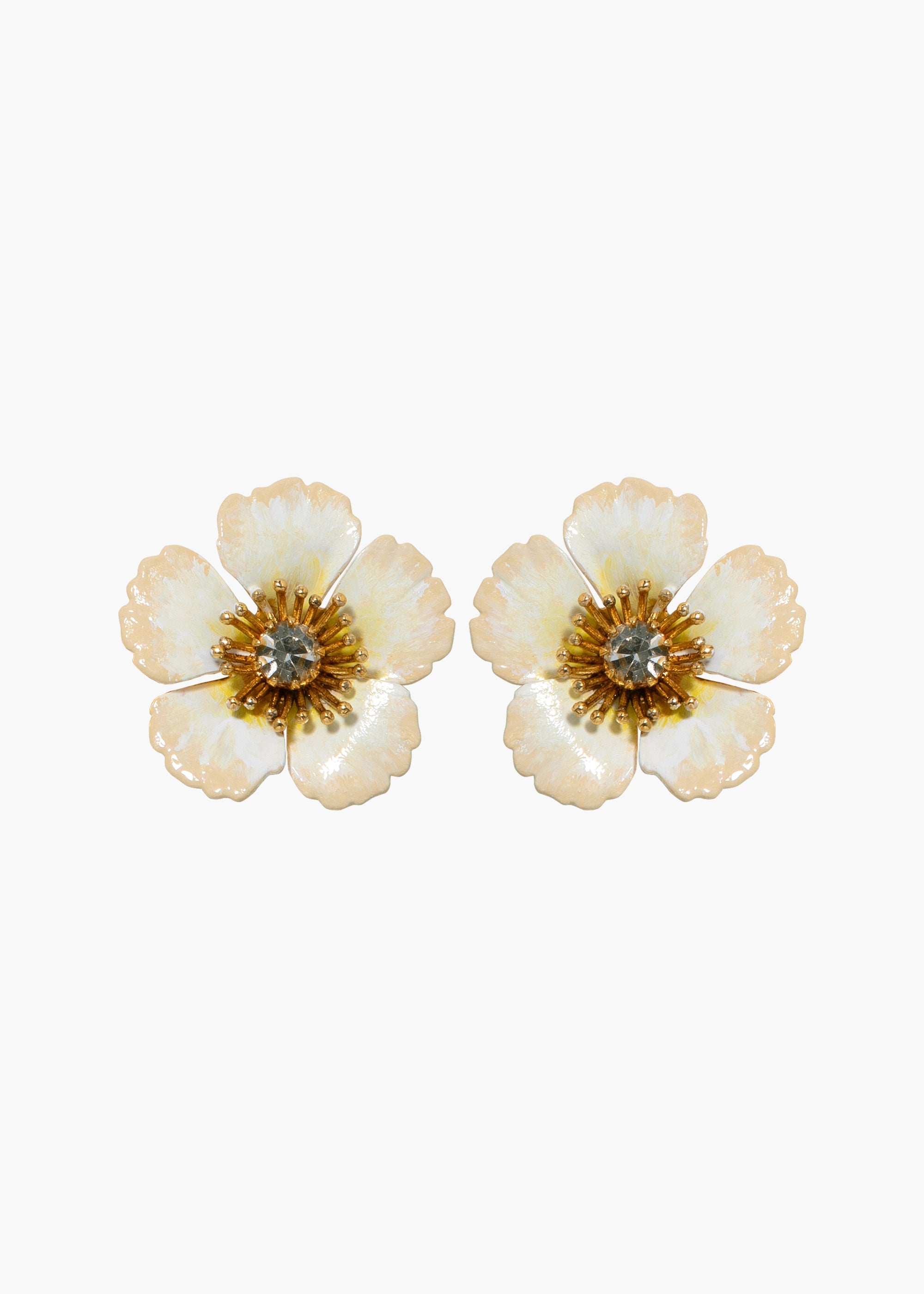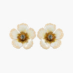 The Deb Earrings are inspired by the organic beauty of natural flowers, with lifelike color gradation that brings the bloom to life. To achieve this soft detailing, each flower is painted by hand in our New York studio in a process that takes three days to complete. Sculptural stamen details and a crystal center finish the look. Dimensions: 1 inch length