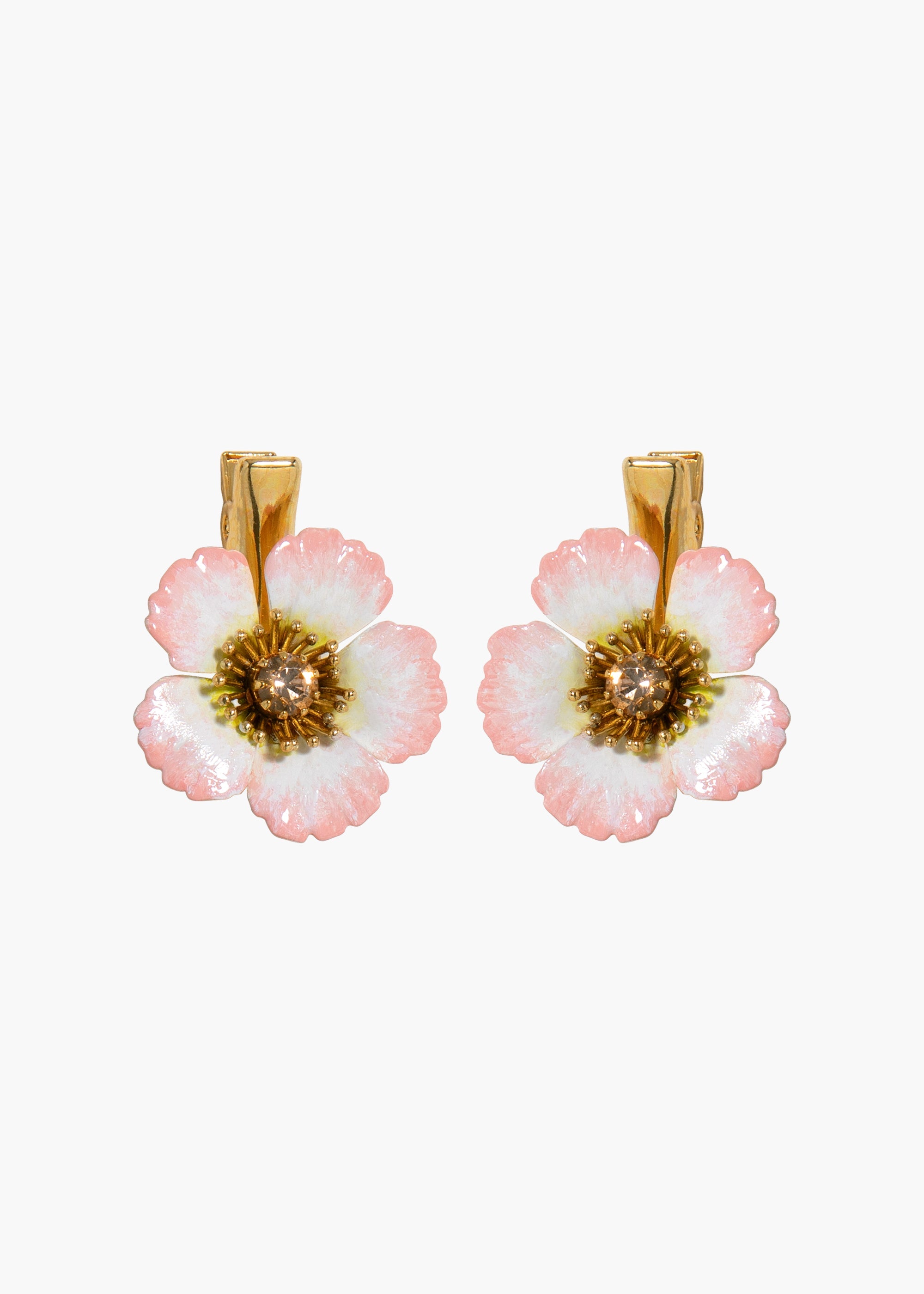 The Debbie Clips are a set of two, with exquisite color gradation that brings the flowers to life. To achieve this soft detailing, each flower is painted by hand in our New York studio in a process that takes three days to complete. Each is finished with a crystal center and an alligator clip for secure placement in the hair, and can be layered with multiple sets worn at once, or mixed with the Debreanna Clips. Dimensions: 1 inch height, 1 inch width
