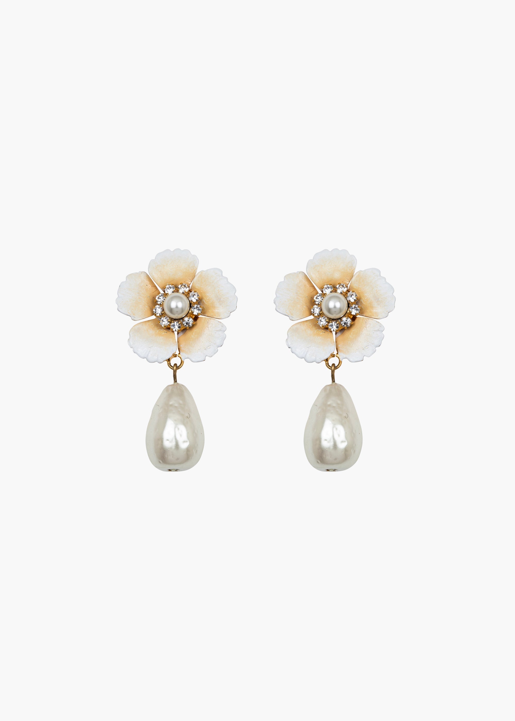 The Deborah Earrings' enticing florals convey the sort of dark romance we always welcome. Made in New York, each flower is individually painted by hand for a one-of-a-kind finish. The look is complete with a baroque-style pearl detail for added movement. Dimensions: 2 inch length