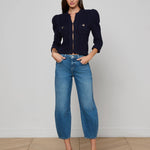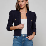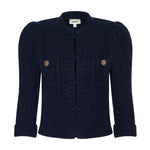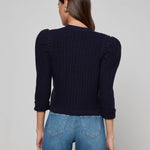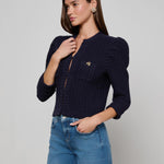 Texture and shape define the Delli cardigan, now in midnight blue. Constructed with a structured knit and puff sleeves, this cardigan can be worn as top or second layer all season, every season.