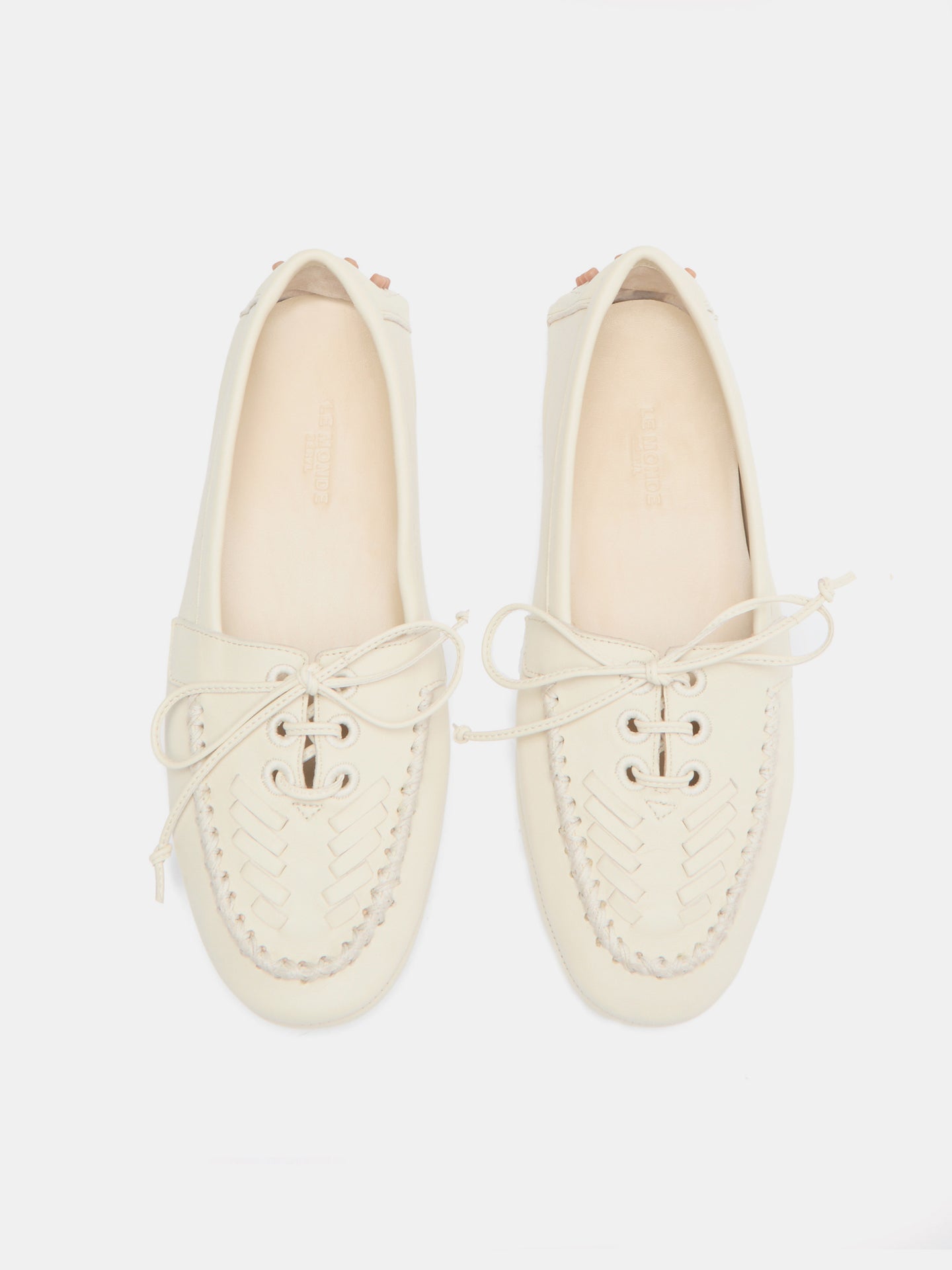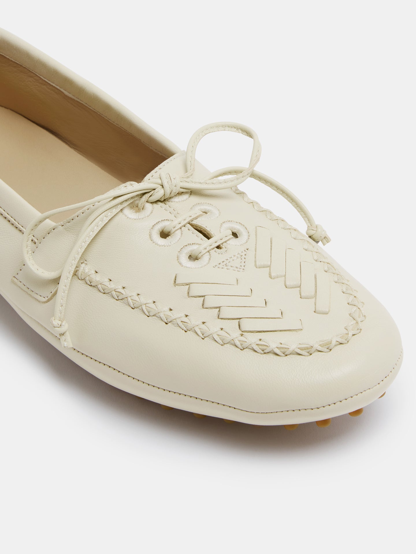 Le Monde Beryl - Driver Moccasin / Ecru Leather Embroidered