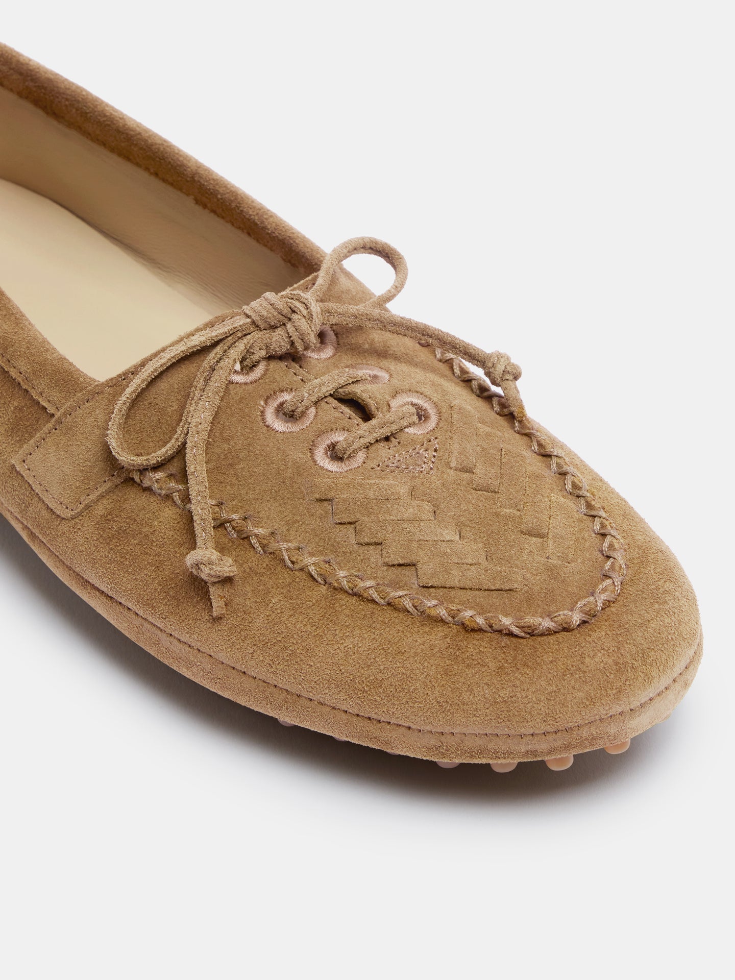 Le Monde Beryl - Driver Moccasin / Taupe Suede Embroidered