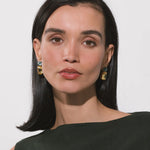 A masterclass in mixed media, the Elin Earrings combine fine Austrian crystals with semi-precious gemstones, in unexpected pairings of color and form. With beautiful natural variations that make each pair unique, the jasper and agate semi-precious stones are hand-sorted and individually matched in pairs, while the emerald-cut crystals loan a vitality and shimmer to the natural stone, bringing out its liveliness. Made by hand in New York, the subtle 18-karat gold-plated setting similarly allows the stone's beauty to shine uninterrupted. Dimensions: 1 1/8in x 1/2in