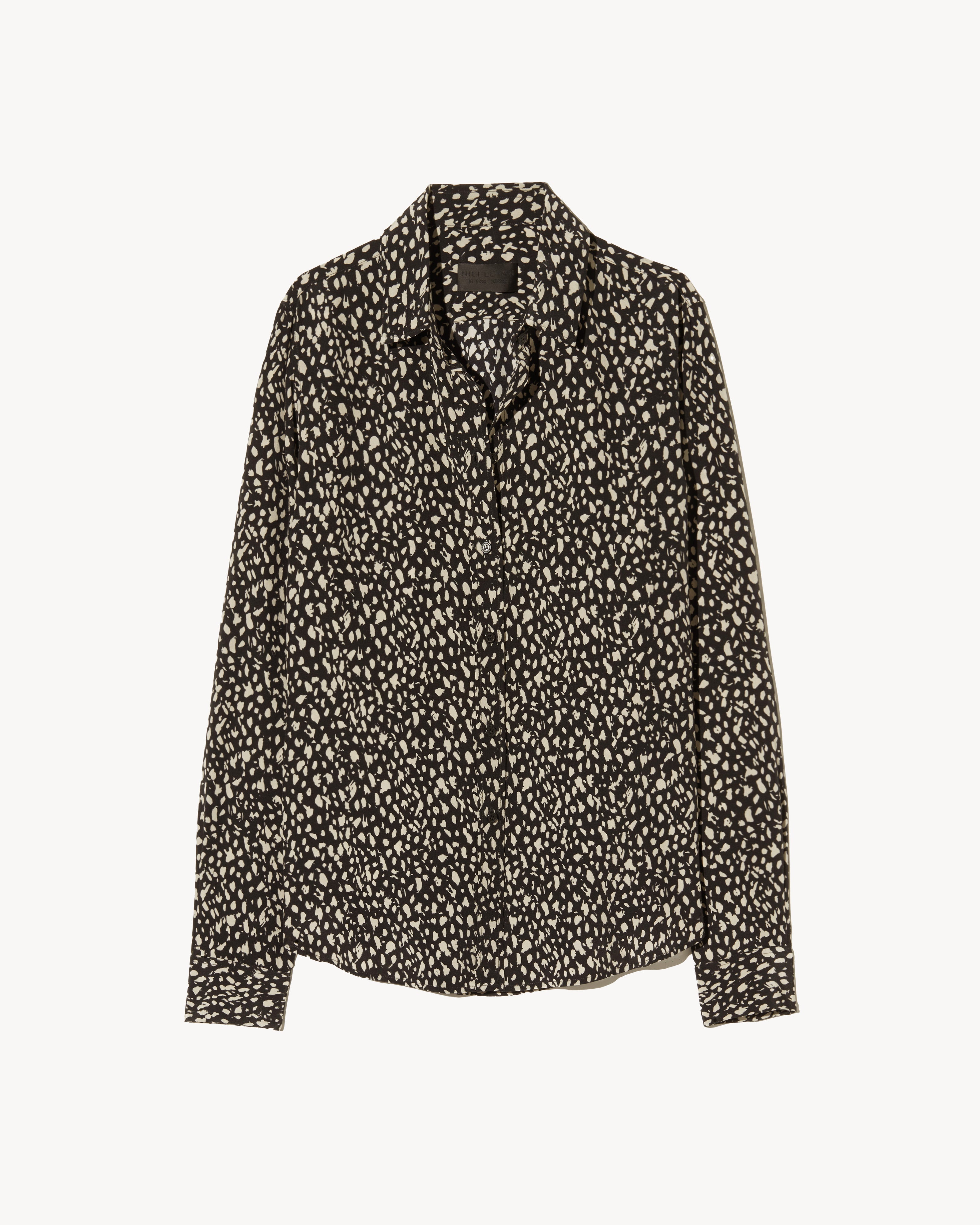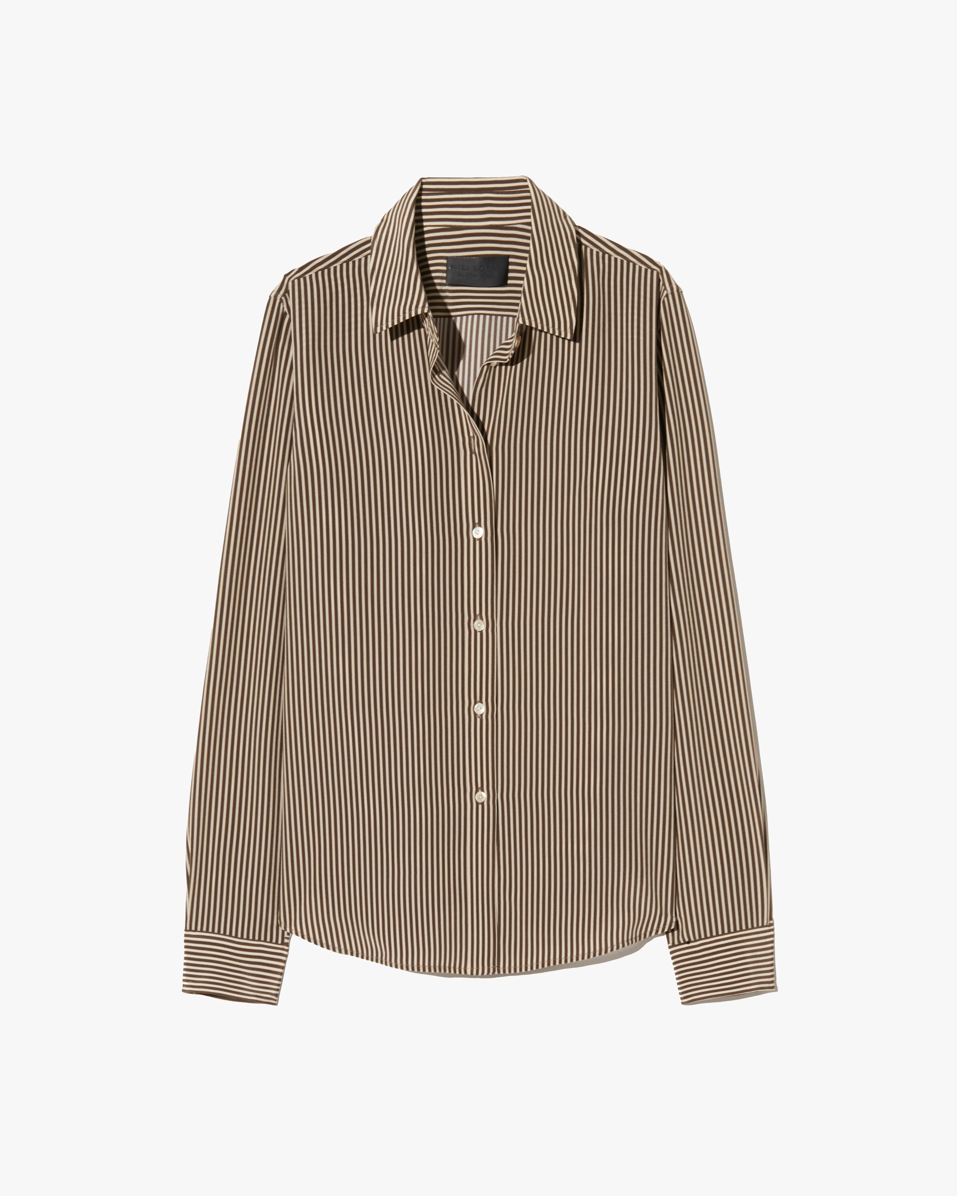 Classic long sleeve collared button up shirt. Straight, slim body. Back yoke. Classic placket details. Dyed to match logo buttons.