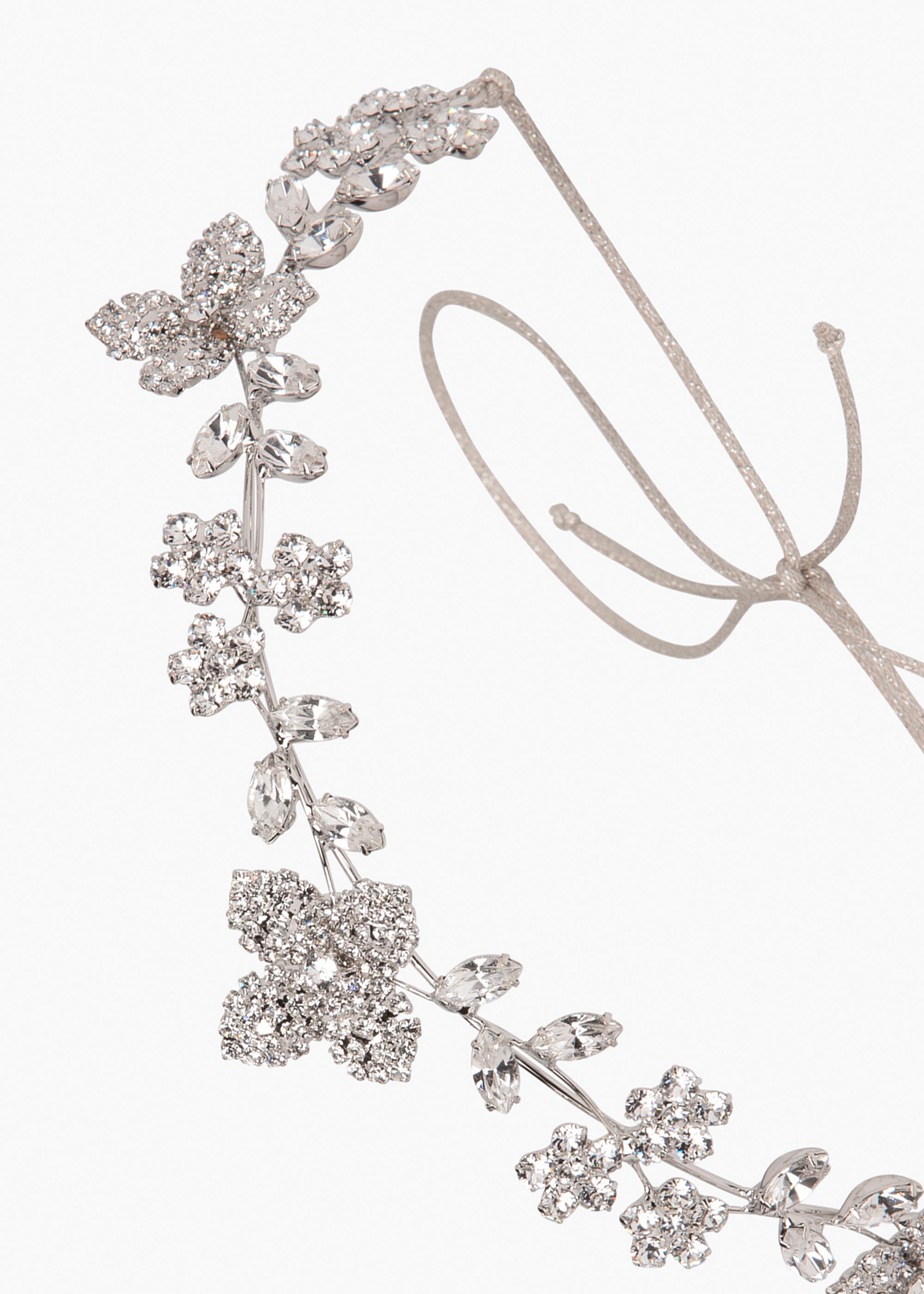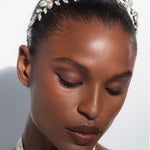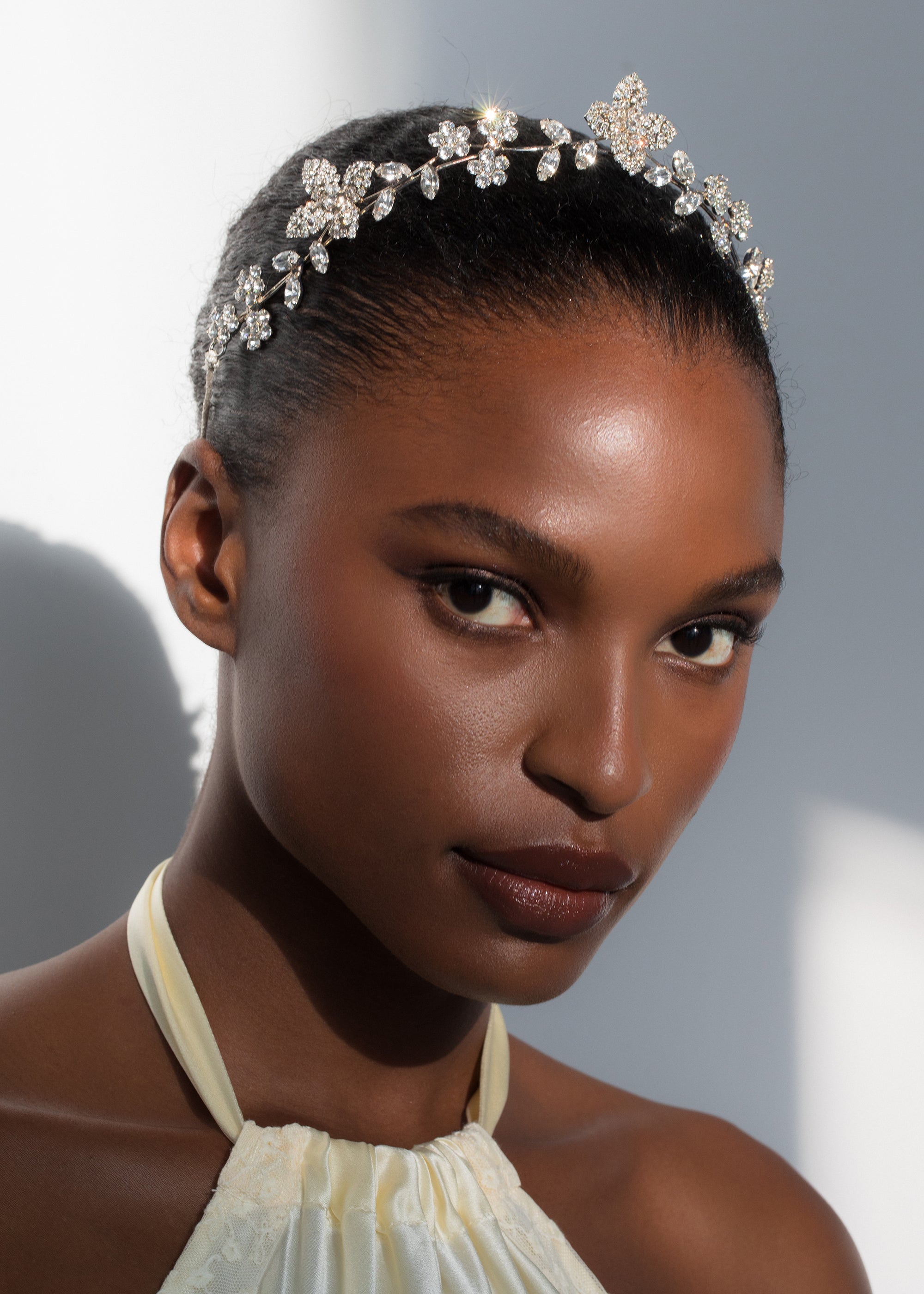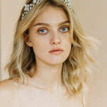 Princess material. We adore the way the Gayle circlet tip-toes towards being a tiara, without feeling overdone. This headpiece combines more than one of our signature floral motifs, with Swarovski crystal blossoms floating delicately above the head, and just the right amount of height. The Gayle Circlet features a ribbon tie closure in the back, for an adjustable and comfortable fit. Pair with the coordinating Ariana Earrings.