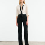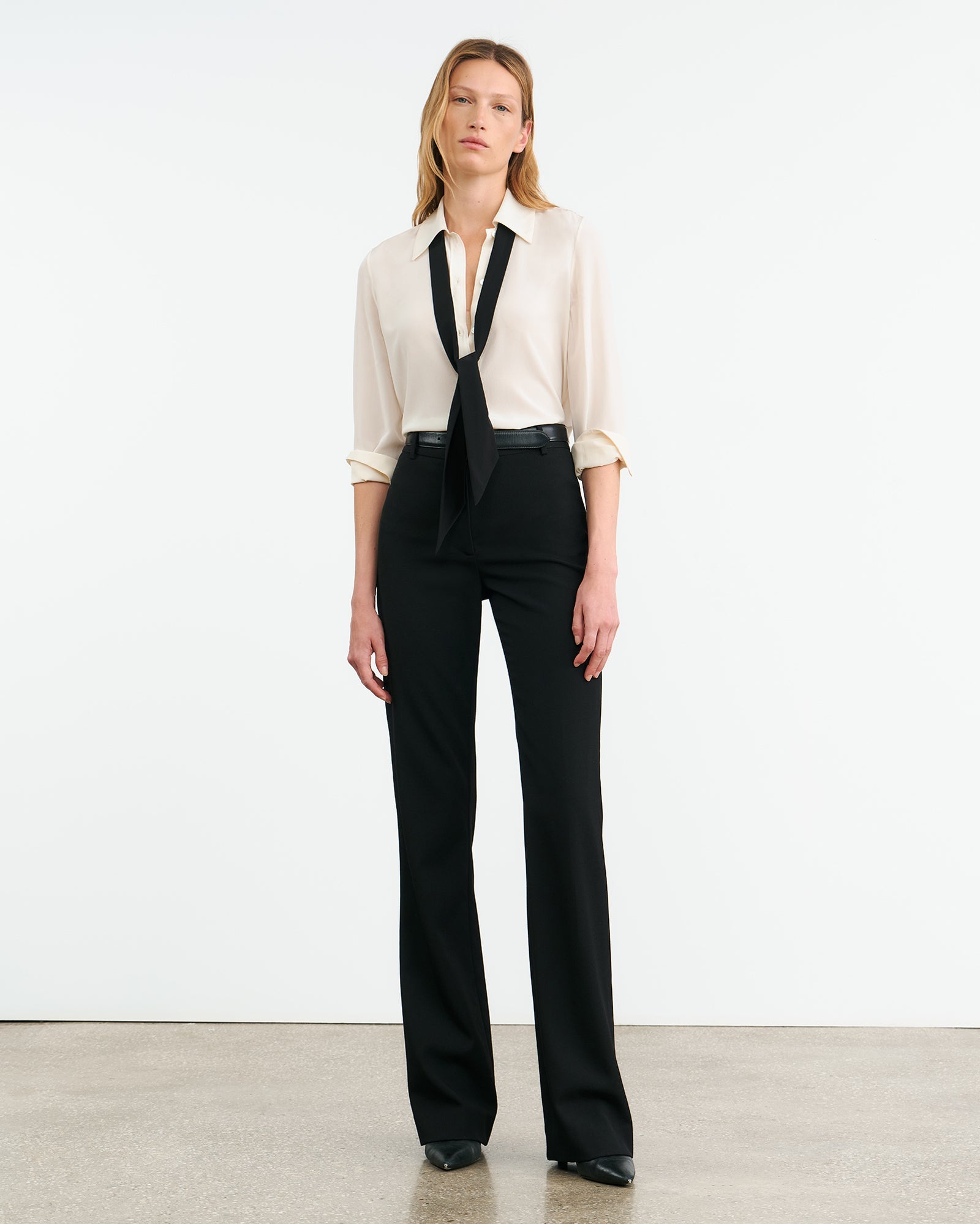 Classic straight fit collared shirt. Center front placket. Troka buttons. Straight hem. Fixed combo tie detail at back.