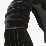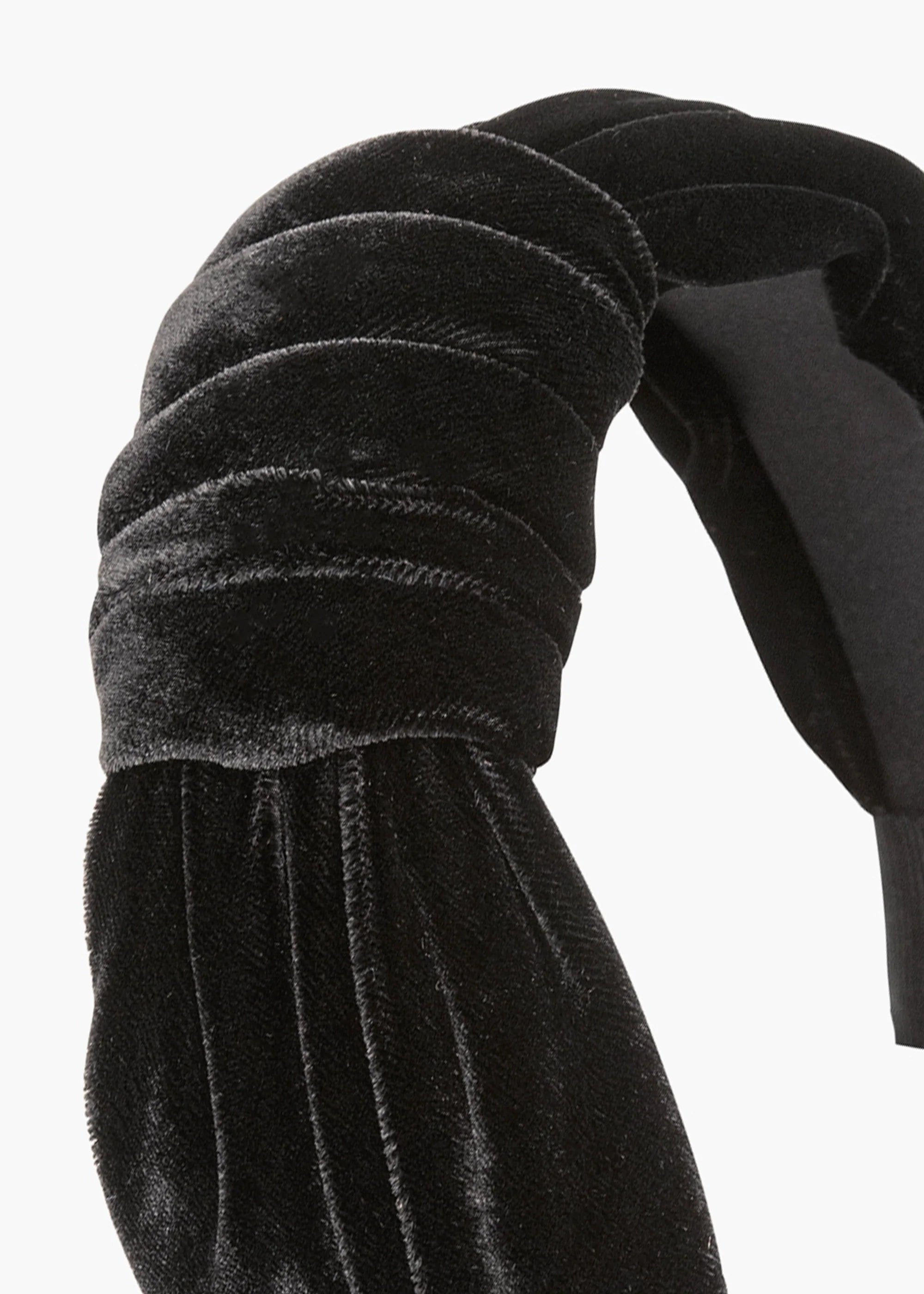 The Helene Headband is our latest update on the iconic knotted headband silhouette Jennifer Behr is known for. Made by hand in New York, the silk velvet is hand-draped for the perfect amount of volume. The luxurious silk-wrapped flexible headband base is finished with grosgrain-wrapped ends. Dimensions: 1 5/8 in