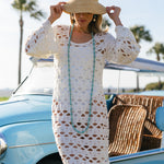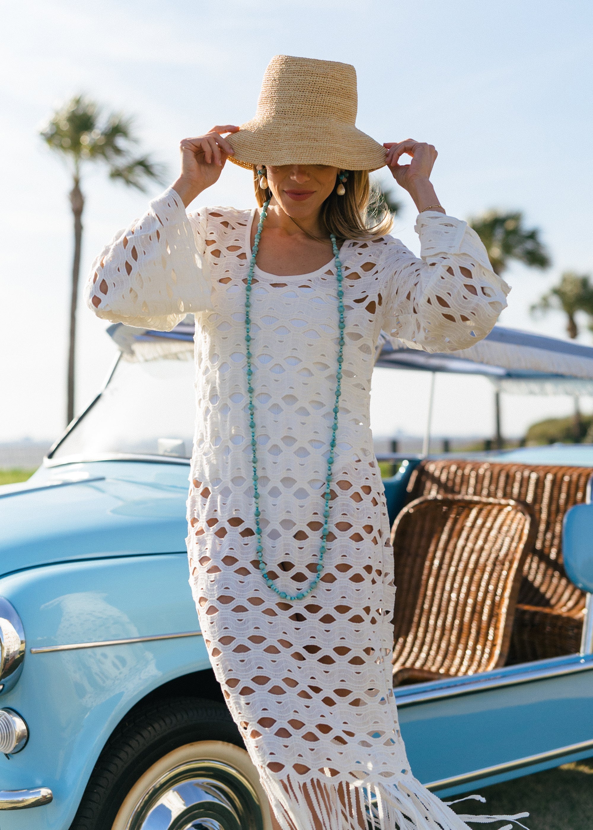 A long strand of turquoise beads, the Malta necklace can be worn single, double or triple wrapped around your neck. This piece came to life following Julia’s years of searching for the perfect summer necklace. The necklace is made from 100% turquoise beads and is designed to be mixed effortlessly with earrings from this capsule, such as the Cove or Cay Earrings, for the ultimate vibrant summer look. Dimensions: 60" total length