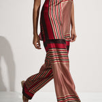 A relaxed yet elevated pant designed from a luxurious blend of rayon and viscose in a geometric red brown stripe. Featuring an elasticated waist for a comfortable fit, they fall into a straight leg, long in length. Style under the matching Aina Top or Cora Shirt.
