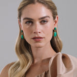 The Joliel Earrings are a dressed-up take on our best-selling Justine Earrings, recreated with stunning semi-precious gemstones, like malachite and larimar, which make each pair unique. Inspired by the elegant, clean lines of Art Deco marble interiors, the nearly invisible 18-karat gold-plated setting is designed to emphasize the gemstone's inherent marbling. Made by hand in New York, these drops are punctuated with a delicate Austrian crystal for added sparkle. Dimensions: 1.5" length