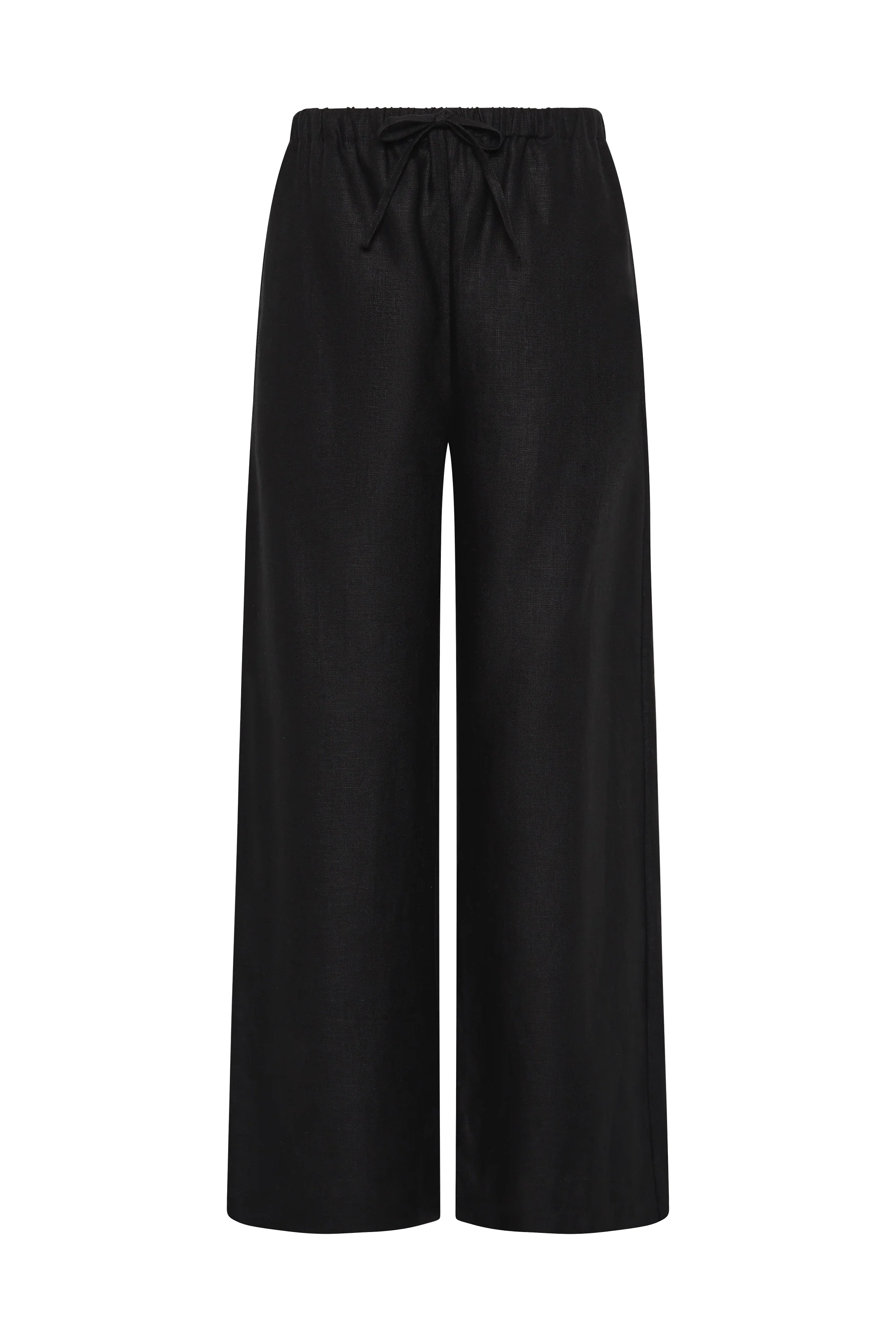 A signature FAITHFULL silhouette, reimagined with new elevated details and designed from a 100% European Flax® linen fabrication. They are a relaxed pant sitting mid-rise on the waist with an elasticated drawstring and side pockets, falling into a wide leg. Offered in a classic black colourway for versatile wear with throw-on throw-off appeal, style with a bikini top or simple top like the Sadie Top.