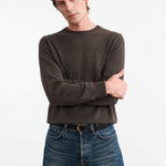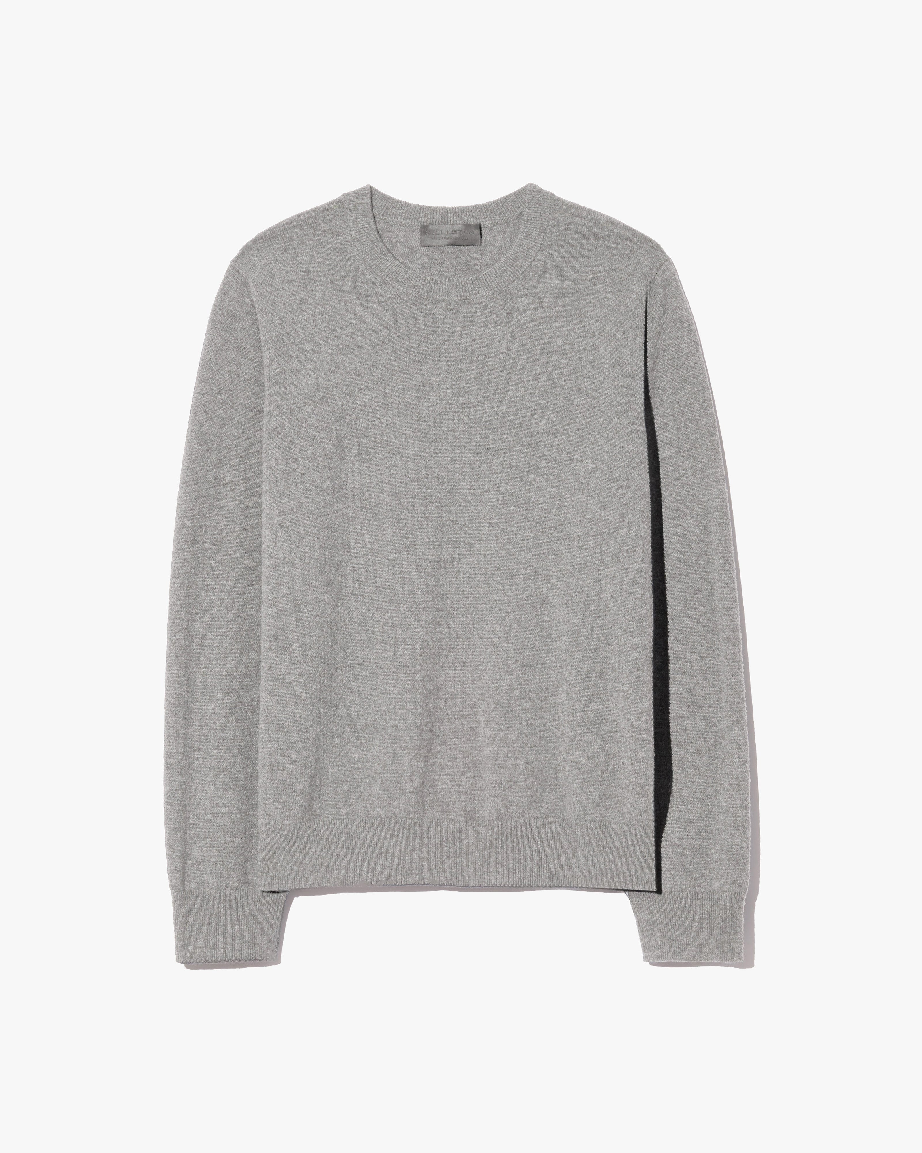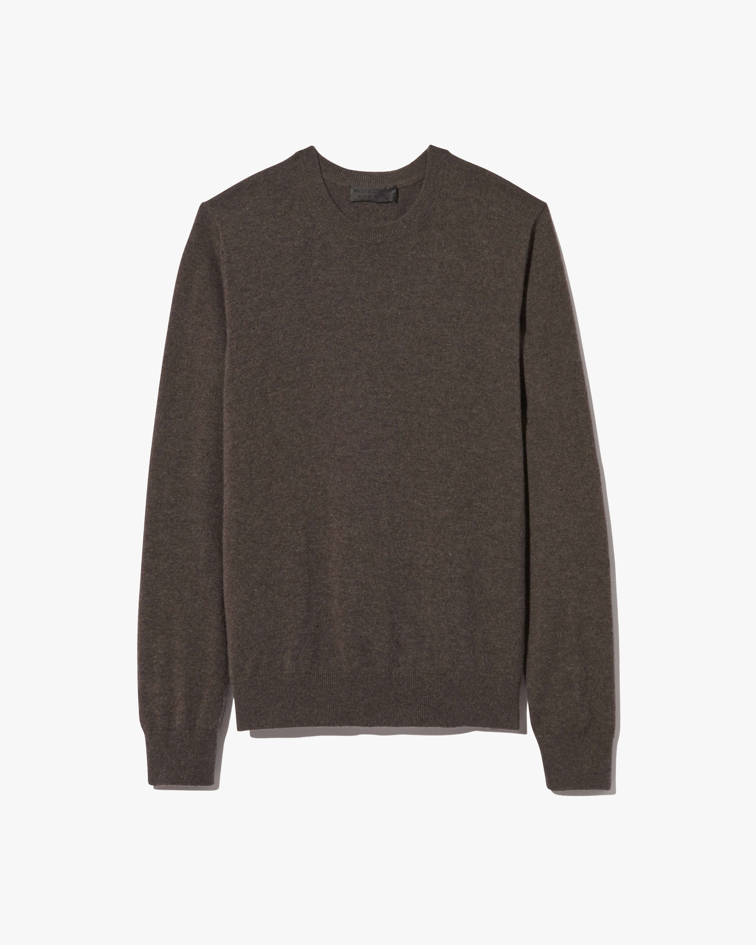 Lightweight relaxed crewneck sweater in cashmere. Double layer rib trim at neck. Rib trim at neck, sleeve and hem. Fully fashioned. Signature center back cable knit detail.