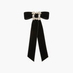 The Kinley Bow Barrette is a Baroque twist on our bestselling bow. Our classic velvet bow is framed by an ornate buckle of fine crystals in a floral motif. It's finished with an automatic French barrette closure, making placement in the hair a breeze. Dimensions: 5 inch width, 6.5 inch length