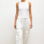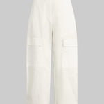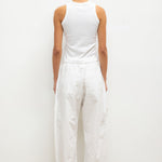 Cut in our garment dyed Kyoto Cotton, The Kyoto Barrel Pant is a utility-inspired trouser featuring a faux zip fly front, ruched elastic back waistband, and front patch pockets.