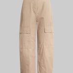 Cut in our garment dyed Kyoto Cotton, The Kyoto Barrel Pant is a utility-inspired trouser featuring a faux zip fly front, ruched elastic back waistband, and front patch pockets. Mix it monochromatically with The Margo in limited edition Khaki.