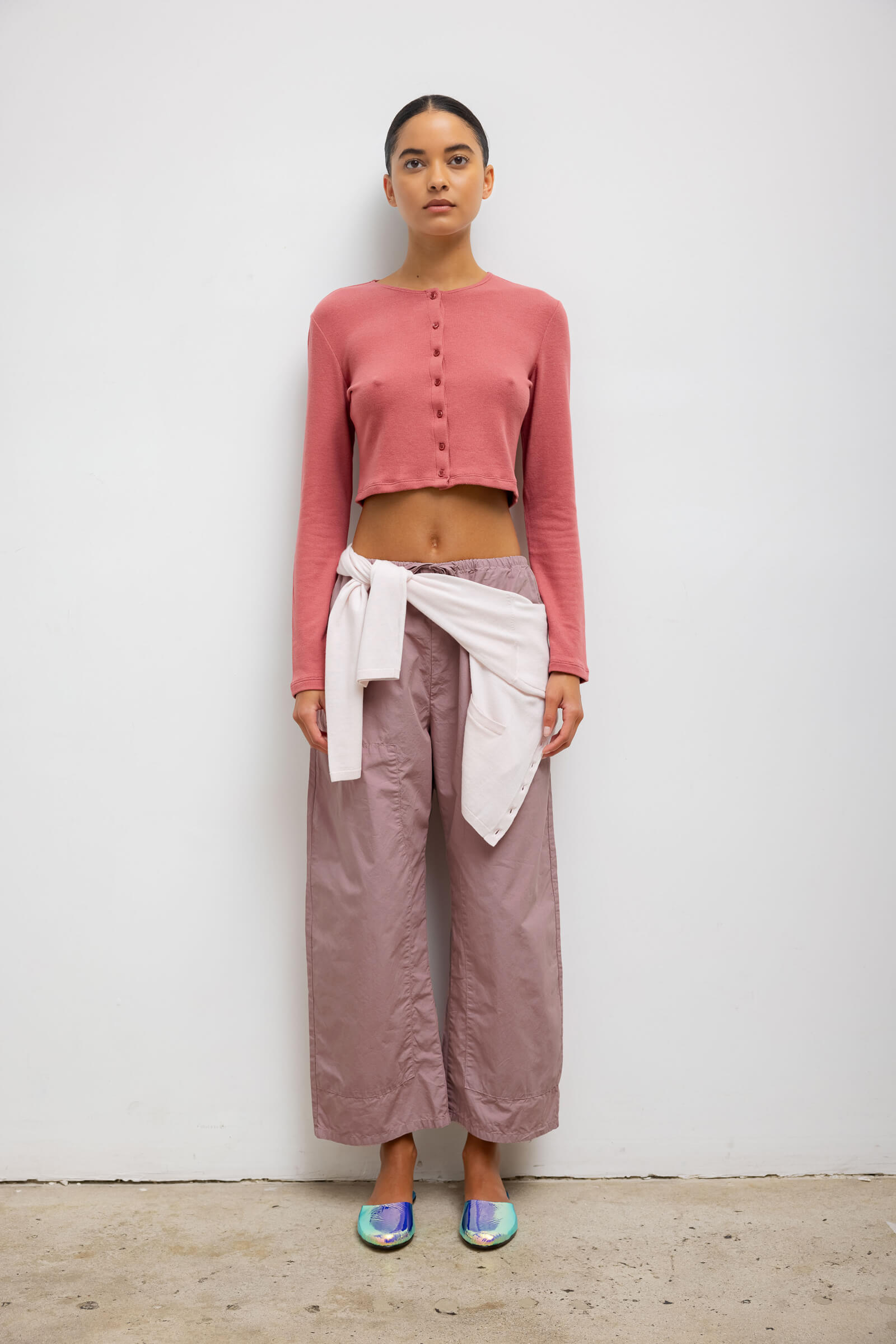 Cut in our garment dyed Kyoto Cotton, The Kyoto Carpenter Pant is a classic utility inspired trouser. This pull-on style pant features a baggy leg silhouette that hits at the ankle, with topstitched utility panels at front, an adjustable waistband, and patch pockets at back.