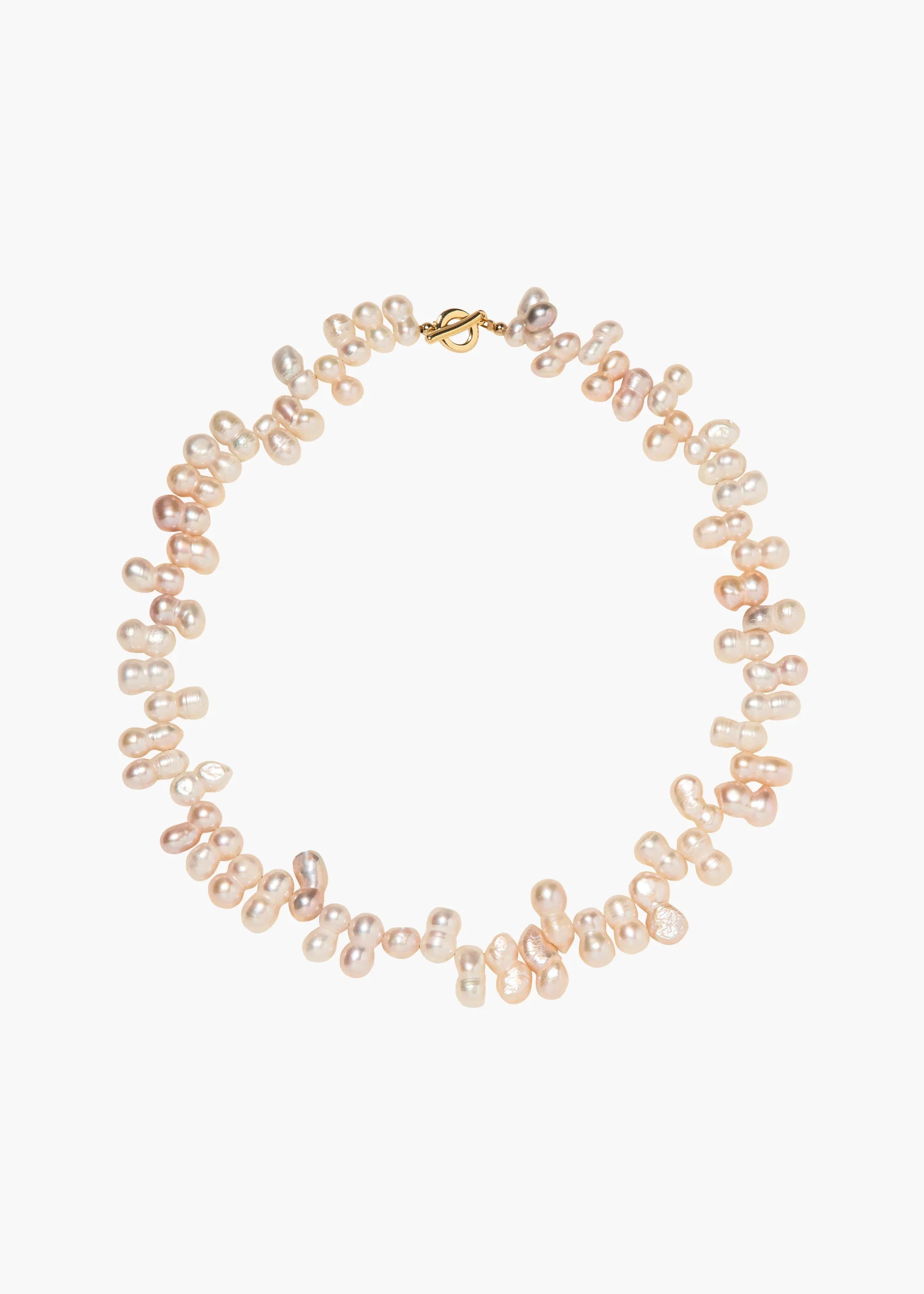 The Lainey Necklace is an homage to freshwater pearls, which we adore for their organic shape and distinct characteristics, with each pearl varying slightly in shape and size. Made by hand in New York, this necklace is frothing with pearls, individually hand-chosen to form a harmonious composition, and because of the unique nature of the stones, each necklace is one-of-a-kind. It's finished with an 18-karat gold-plated magnetic clasp, making it particularly easy to wear, whether worn solo or layered in a stack with our other necklaces.