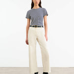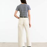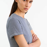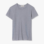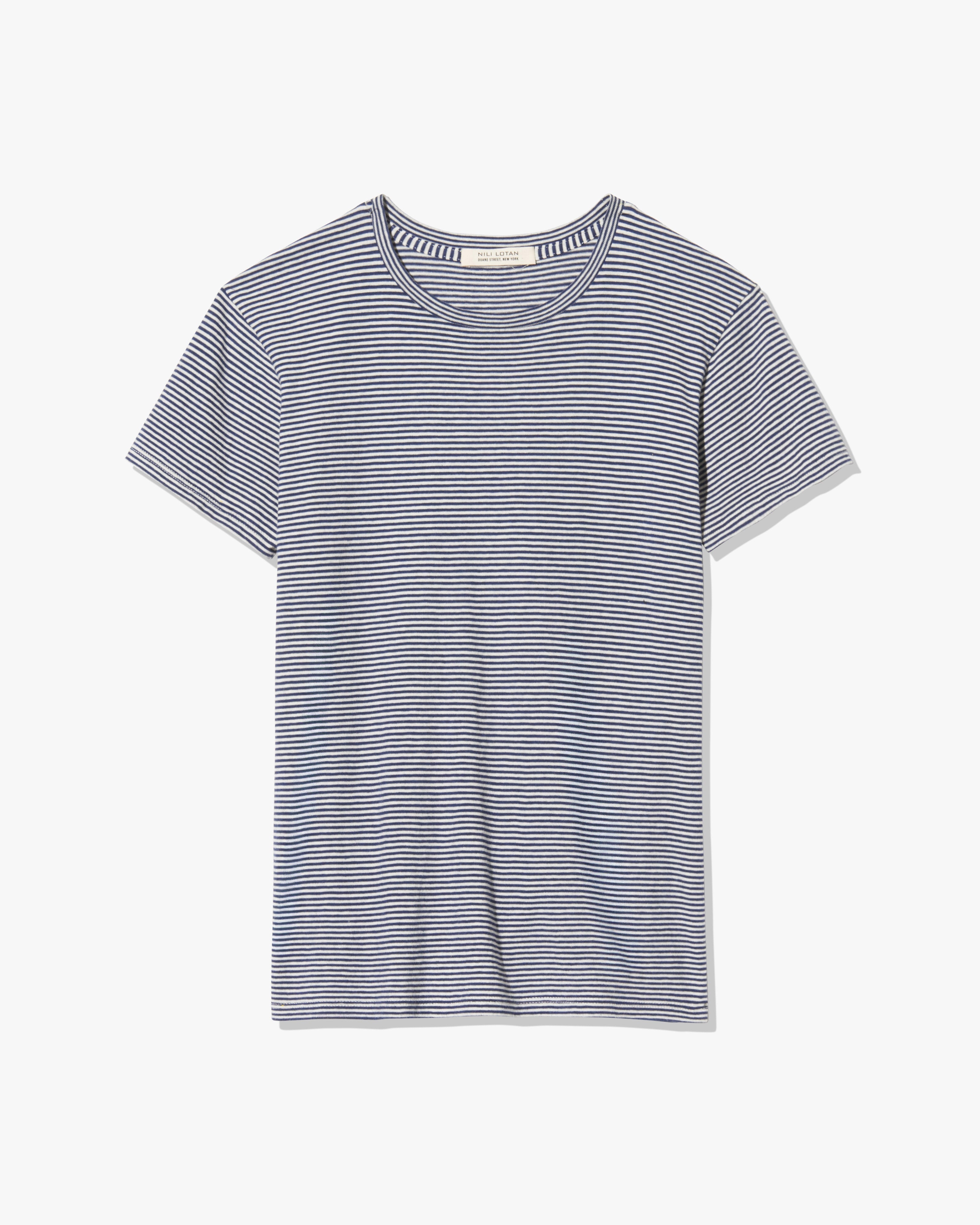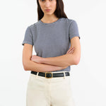 Straight fit short sleeve tee shirt in cotton. Vintage pitch short sleeve. Self-binding along neck and shoulder.