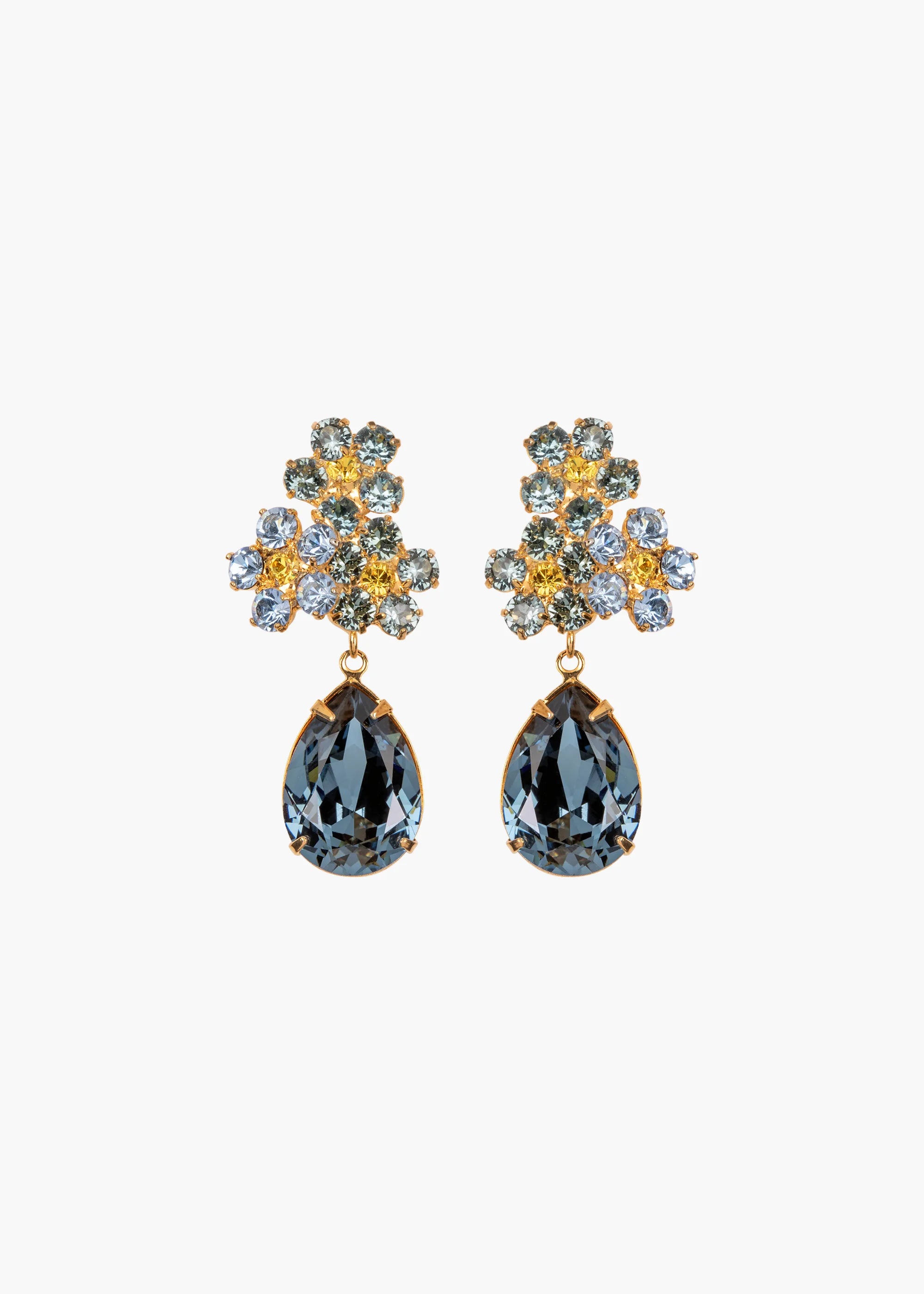 The Lauretta Earrings are the latest blossom to add to your growing collection of our iconic garden styles. Made by hand in New York, the pear-shaped Austrian crystal drops are suspended from a cluster of flowers, for a lush garden effect. Complete with an 18-karat gold-plated setting, these earrings have all the makings of a future heirloom. Dimensions: 1 3/4in x 3/4in