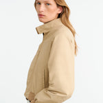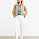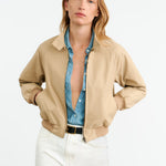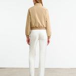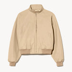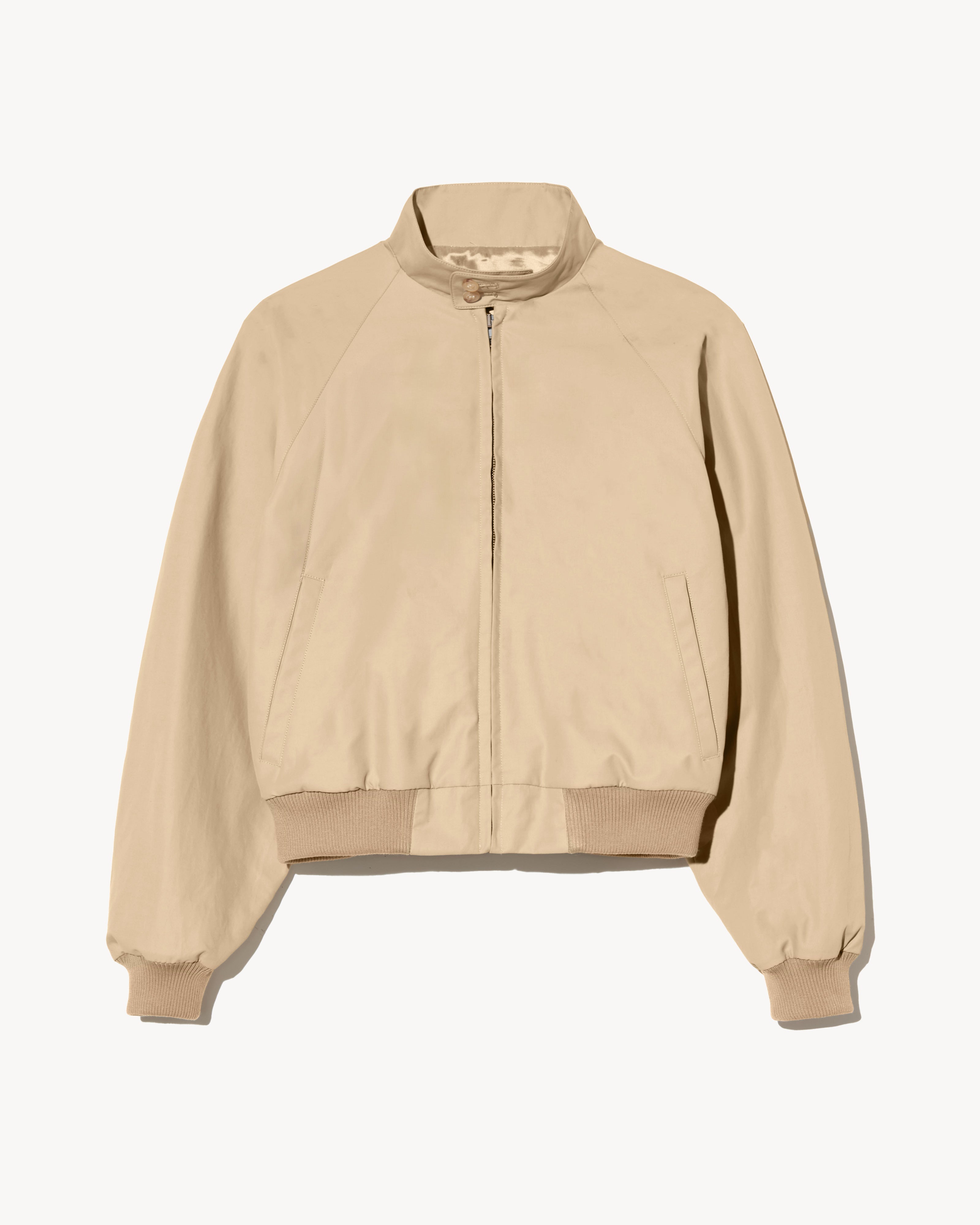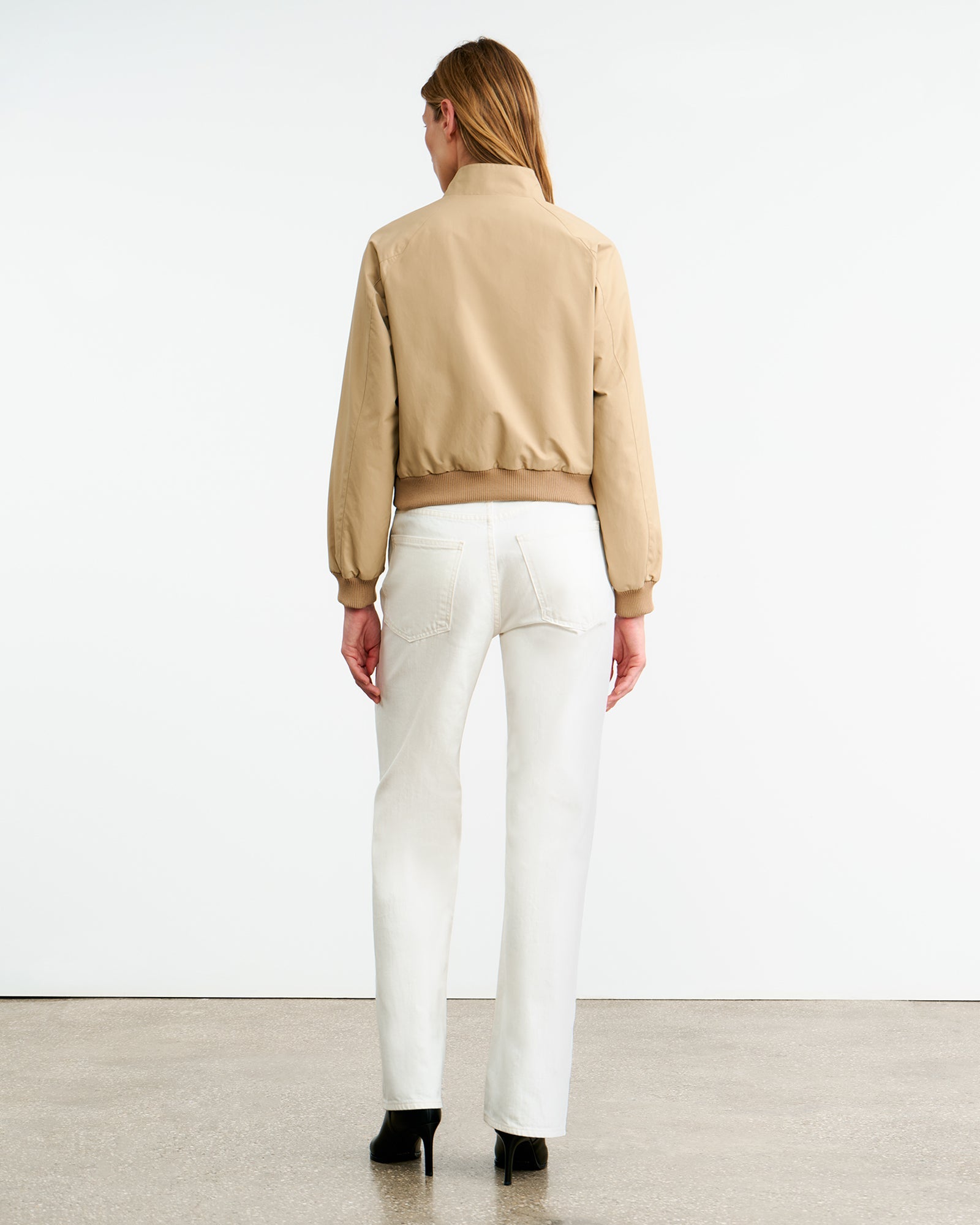 Slim fit bomber jacket. Welt pockets. Tab with button closure. Ribbed cuffs and hem, with blouson effect at back body for a cinched silhouette. Fully lined. Interior chest pocket.