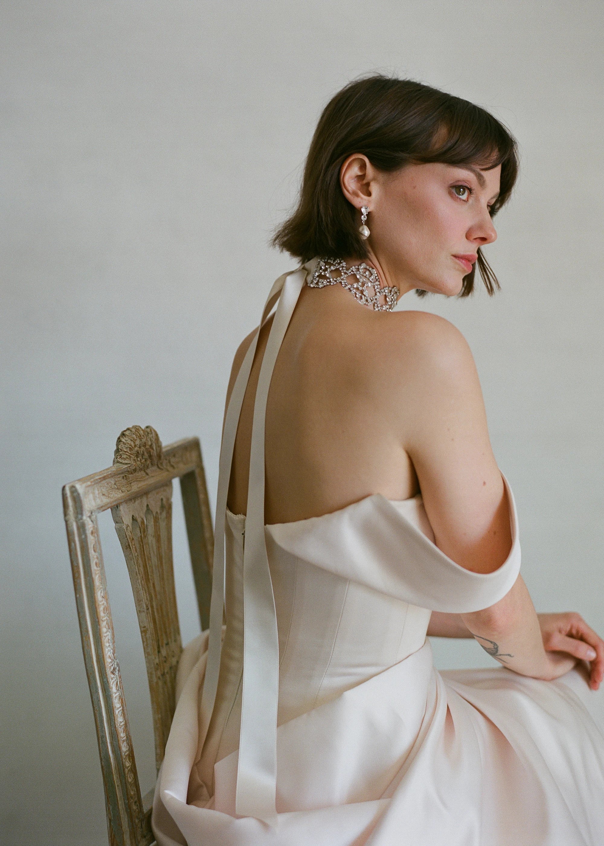 Jennifer Behr - Lavinia Ribbon Tie -- Crystal Cream