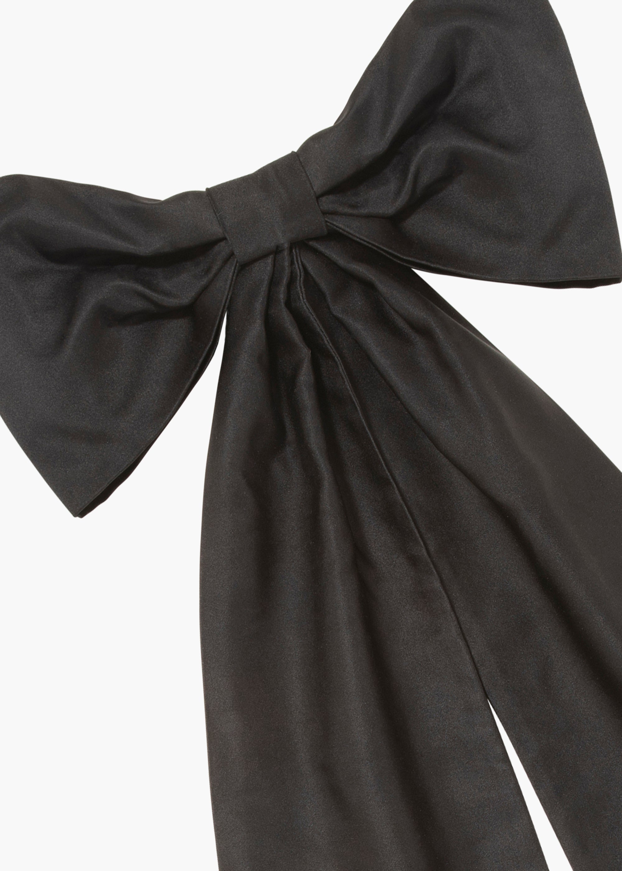 An unforgettable finishing touch, the Leander Bow Barrette dwarfs all other bows with its magnificent scale. Expertly draped and sewn by hand in our New York studio, the structure of the silk satin fabric lends itself perfectly to the oversized bow shape. An automatic French barrette closure makes for easy placement in any number of hairstyles.