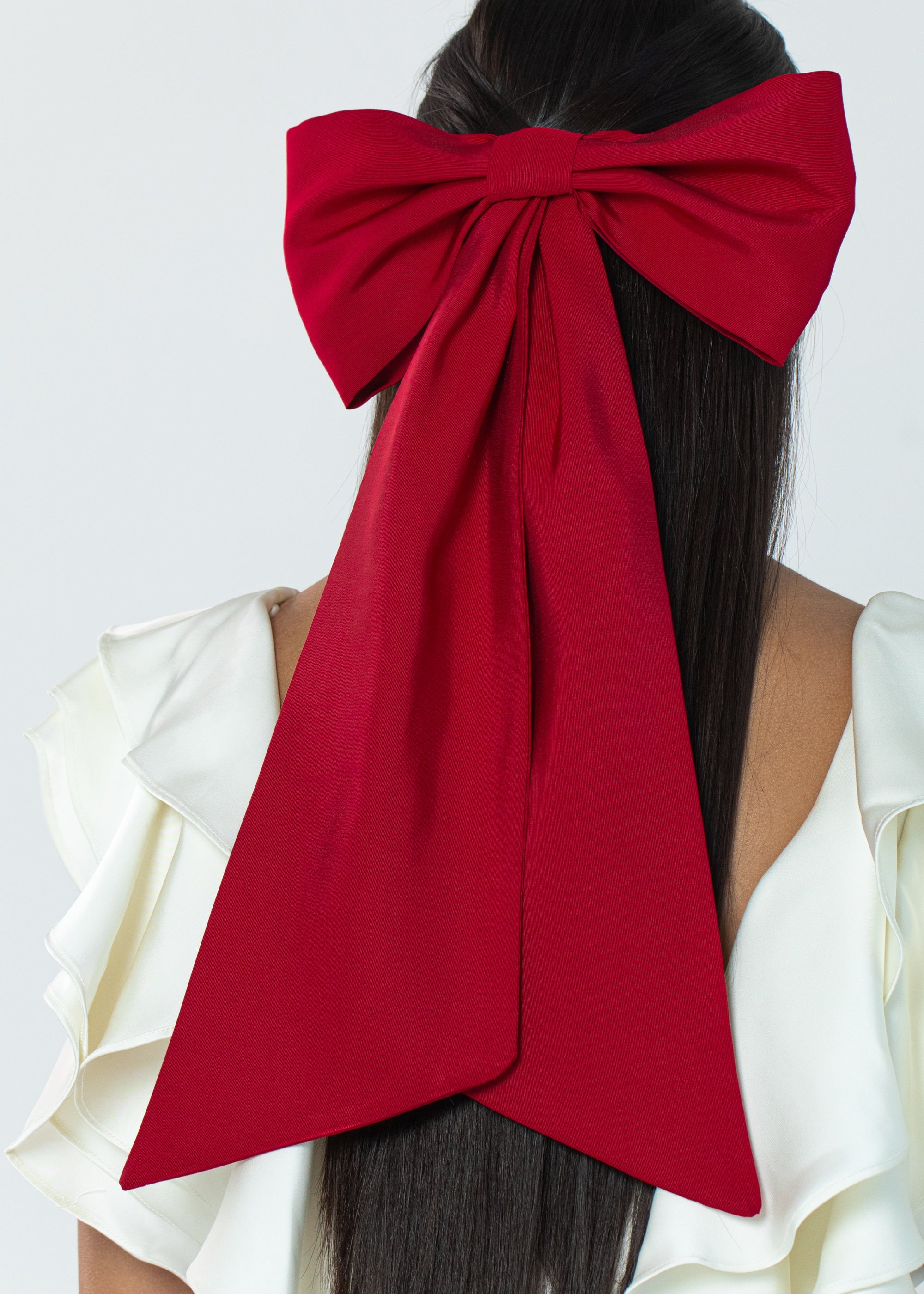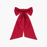 An finishing touch of mythic proportions, the Leander Bow Barrette in Faille dwarfs all other bows with its magnificent scale. Expertly draped and sewn by hand in our New York studio, the structure of the silk faille fabric lends itself excellently to the oversized bow shape. An automatic French barrette closure makes for easy and secure placement in any number of hairstyles. Dimensions: 1.5 inch width, 18 inch length