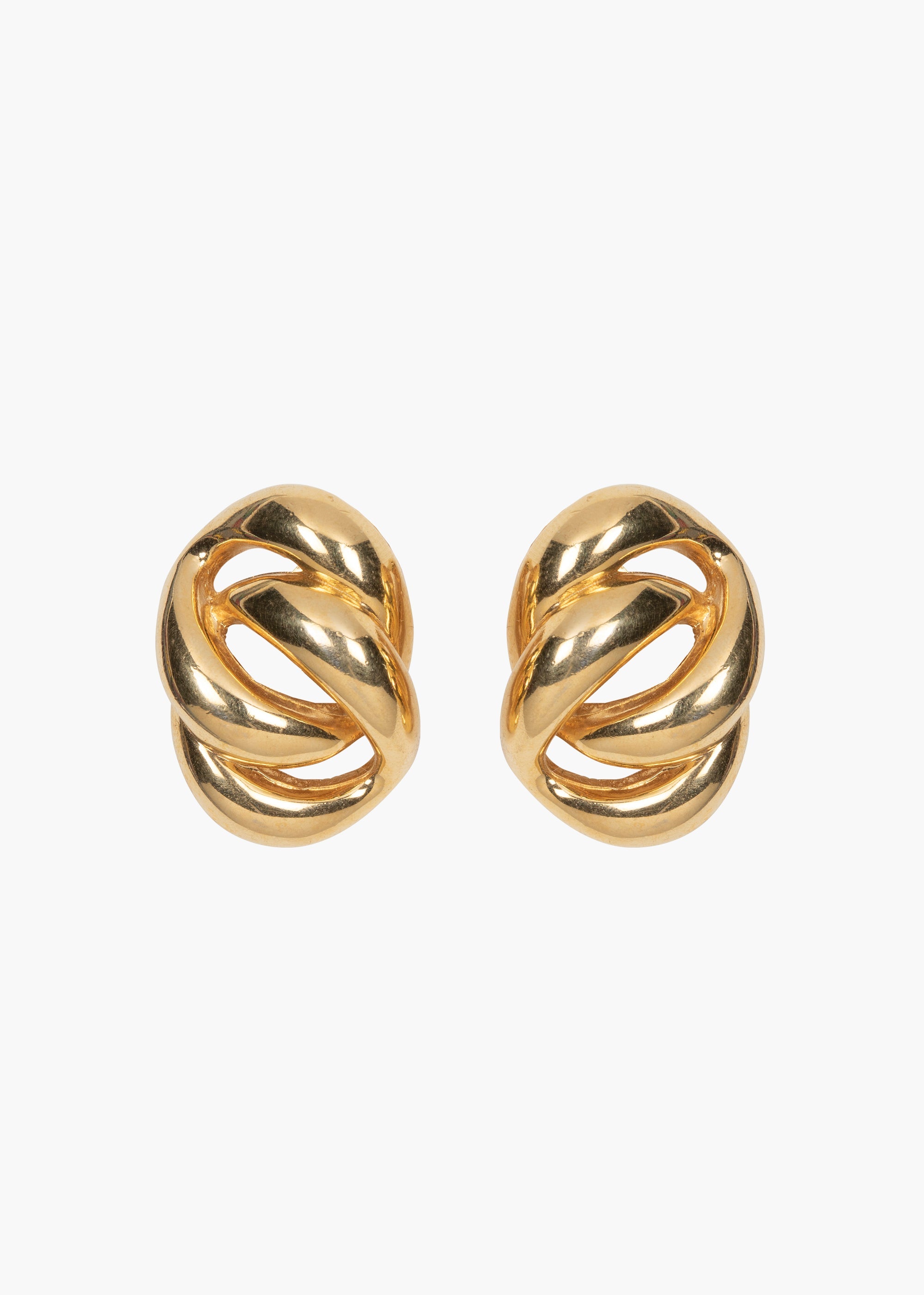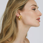 A sculptural stud in a compact size, the Lennox Earrings pack the perfect punch. They cleverly play with scale, featuring 18-karat gold-plated chunky chain-links. These classic gold earrings easily pair with a headband from our collection for a faultless look. Dimensions: 1.5 inch length, 1 inch width
