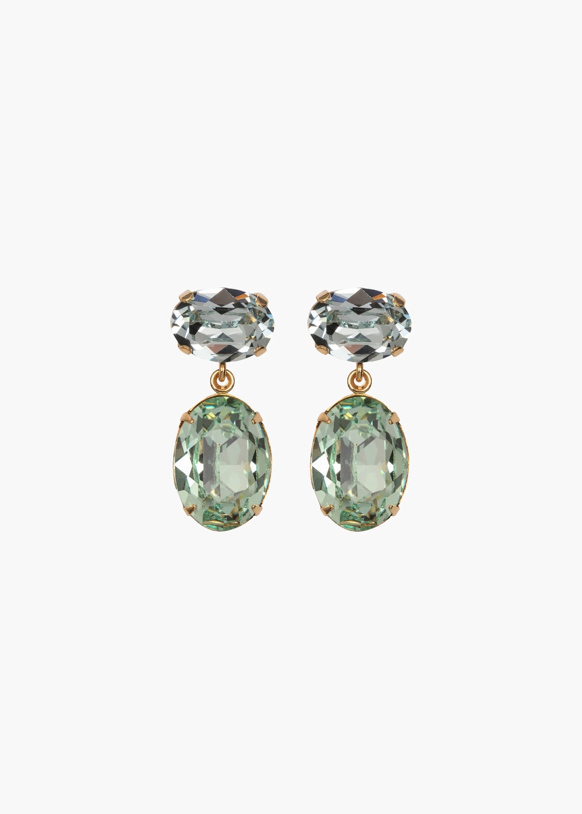 Inspired by antique Georgian era drop earrings, the Lenora Earrings offer a modern twist on an enduring design. Made by hand in New York, fine Austrian crystals are set in opposing directions, in an 18-karat gold-plated setting. These drops are perfectly sized to take you from day to night. Dimensions: 1.25" length