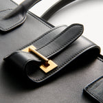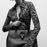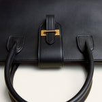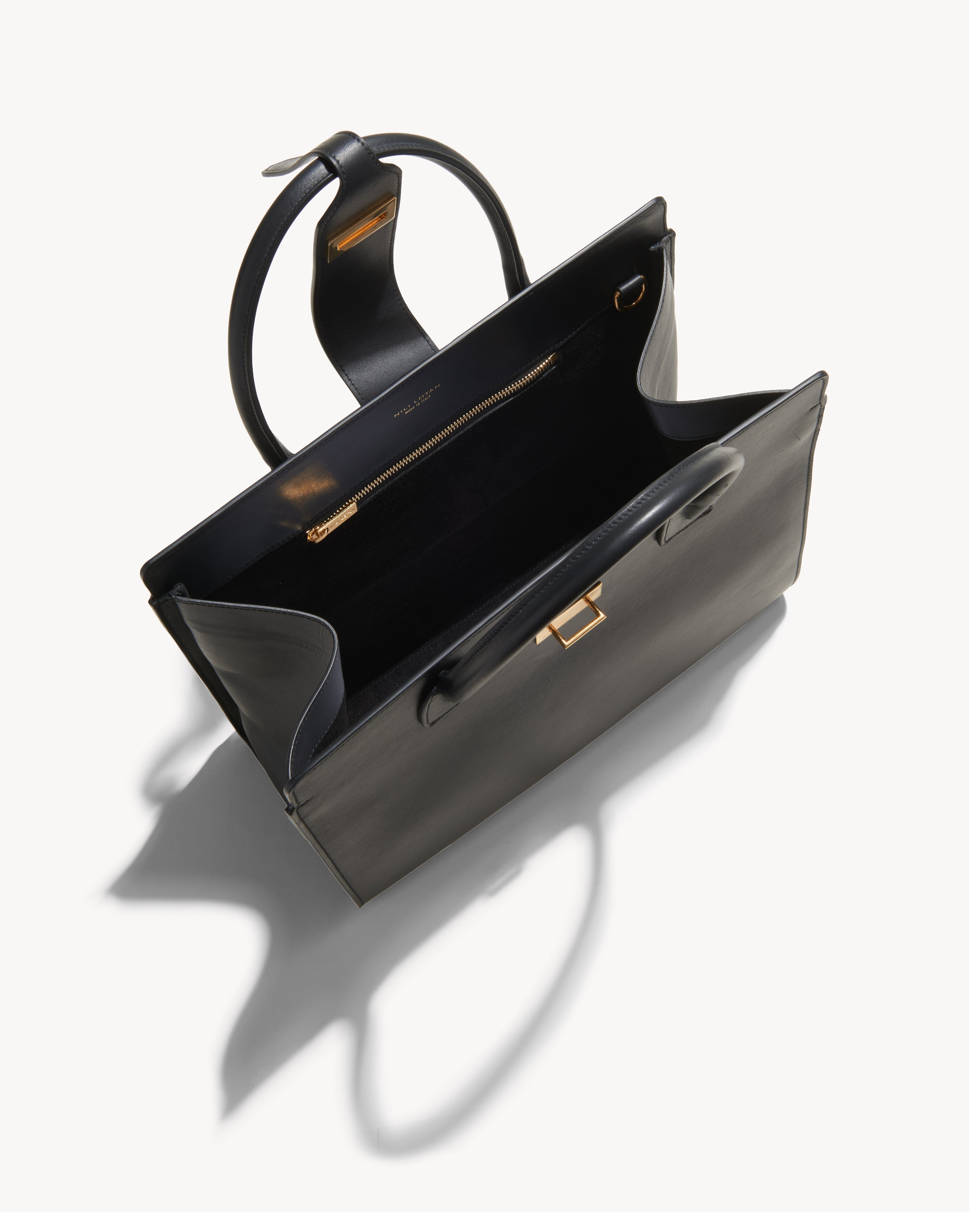Top-handle bag in luxurious Italian smooth leather. Italian suede lining. Removable strap for versatile wear. Interior back wall zip pocket. Semi-structured silhouette. Soft handfeel that collapses intentionally over time. No exterior logo. Interior features a debossed NILI LOTAN NEW YORK “Made In” logo.
