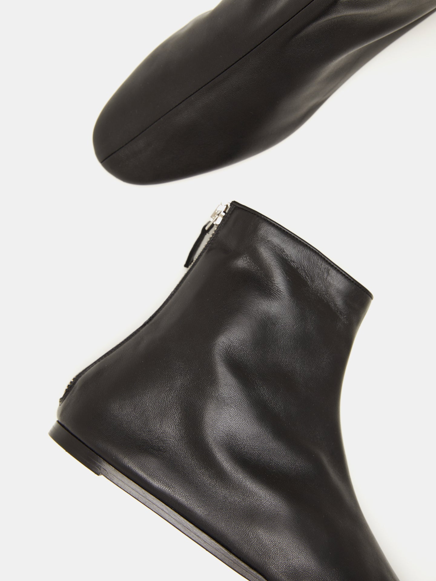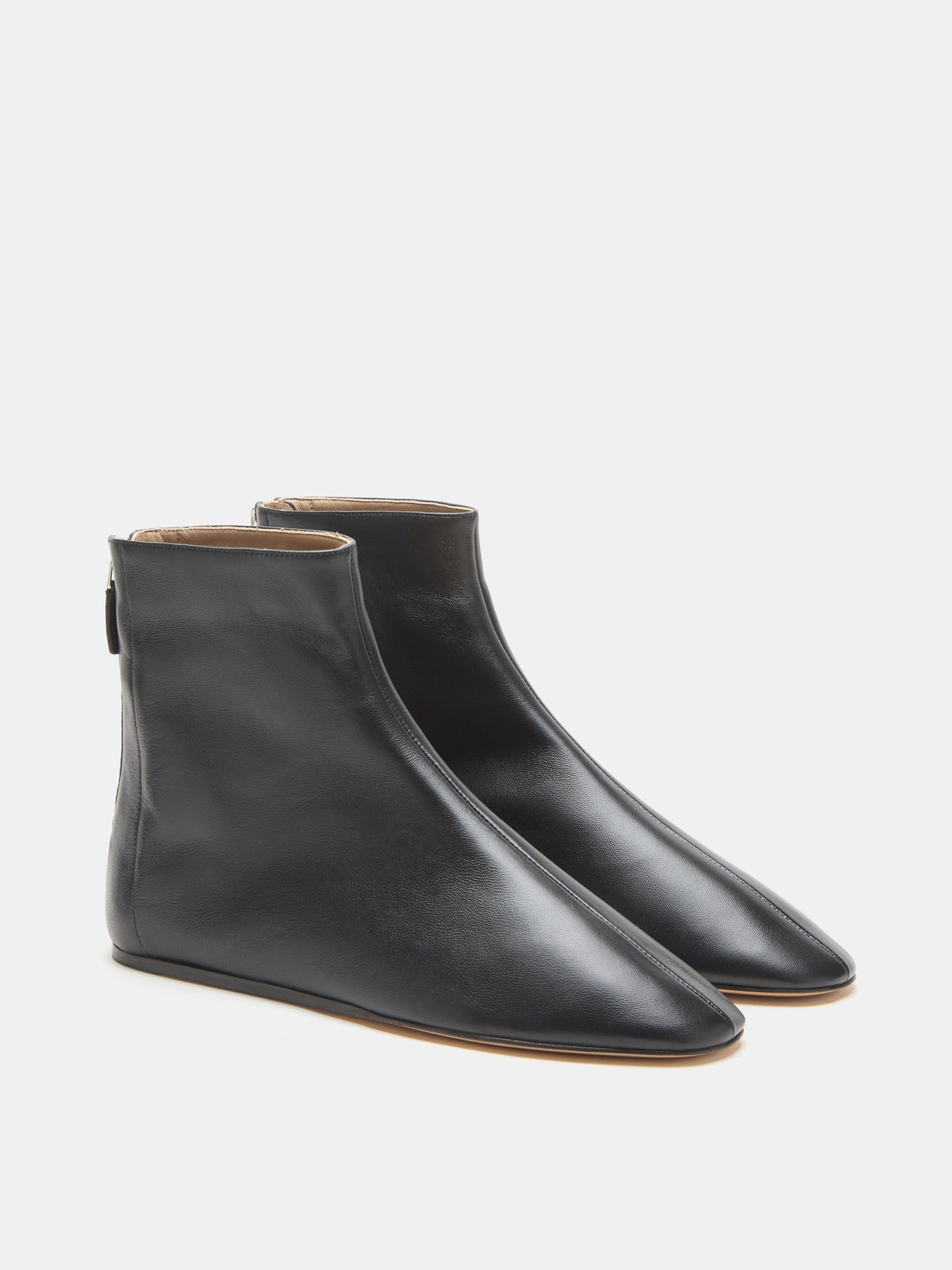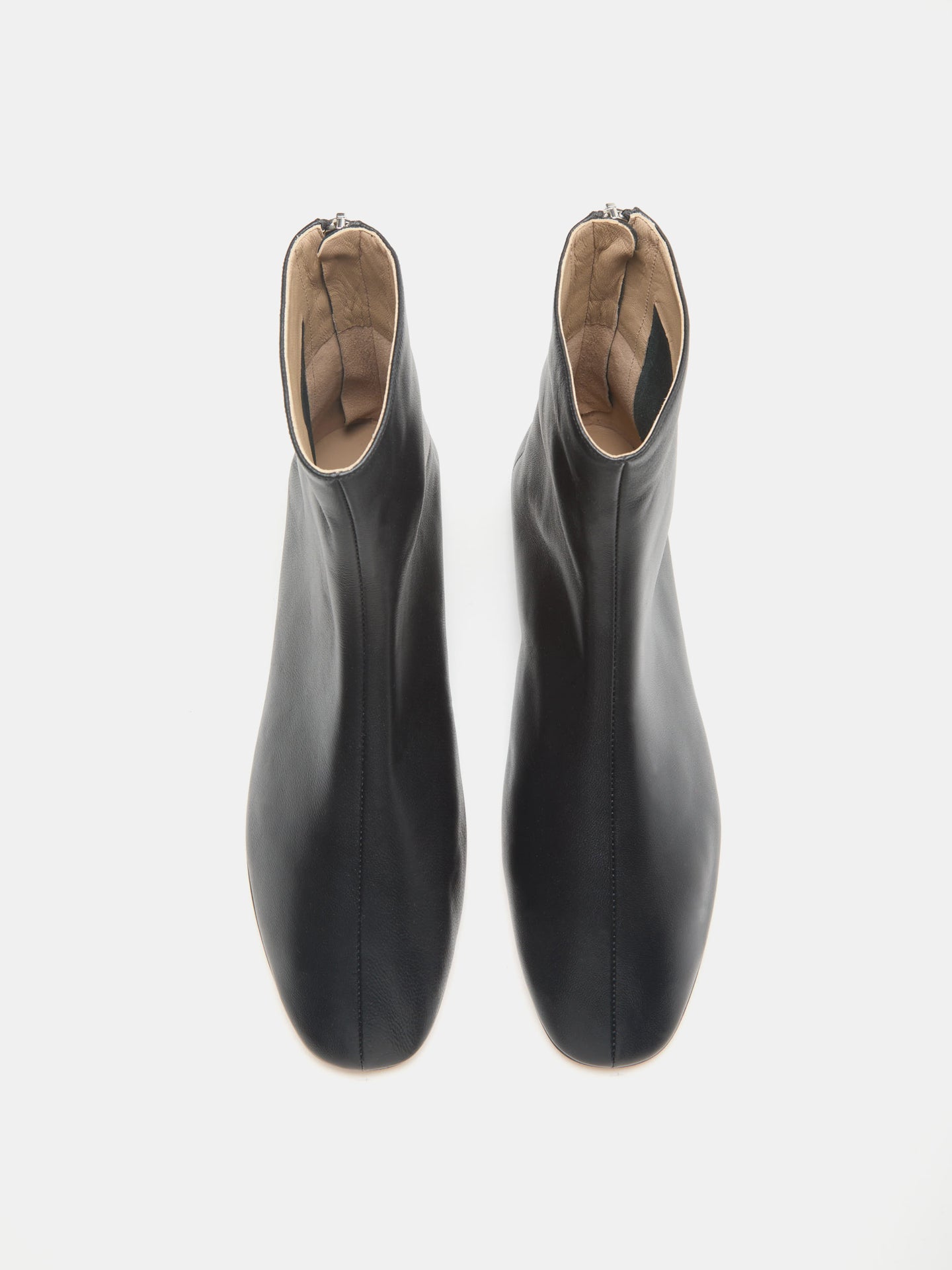 Luna Ankle Boot, handcrafted in black leather, with a cushioned calf leather insole, zip fastening and leather piping. 8mm heel. Made in Italy.