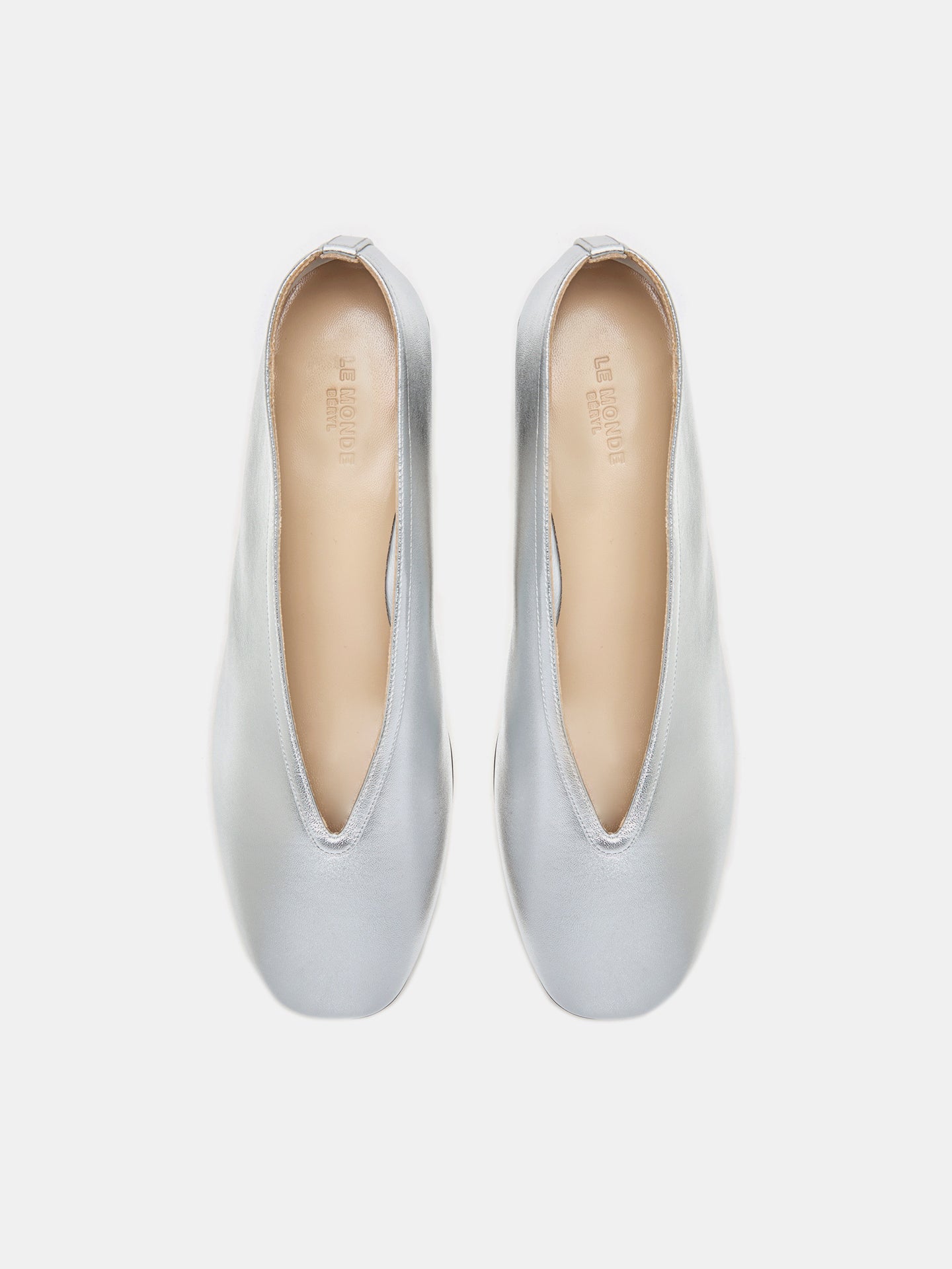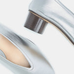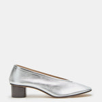 Luna Pump, handcrafted in silver leather with a cushioned calf leather insole and 40mm heel. Made in Italy.